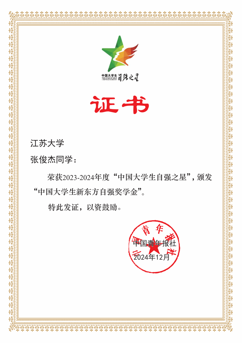 近日,由共青团中央、全国学联主办的寻访“中国大学生自强之星”活动评选结果揭晓。beat365官网能源与动力工程学院张俊杰同学、计算机科学与通信工程学院经普杰同学荣获2023-2024年度“中国大学生自强之星”。