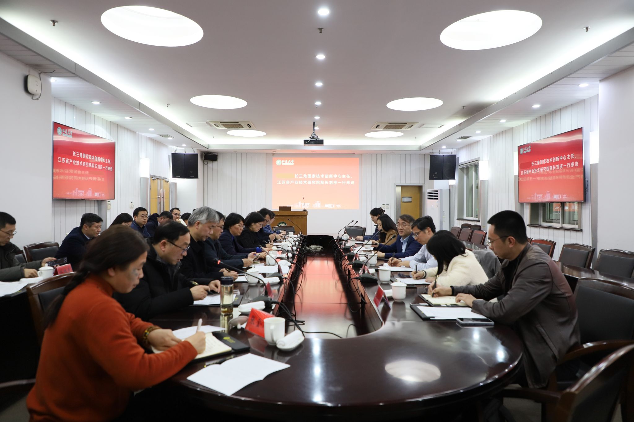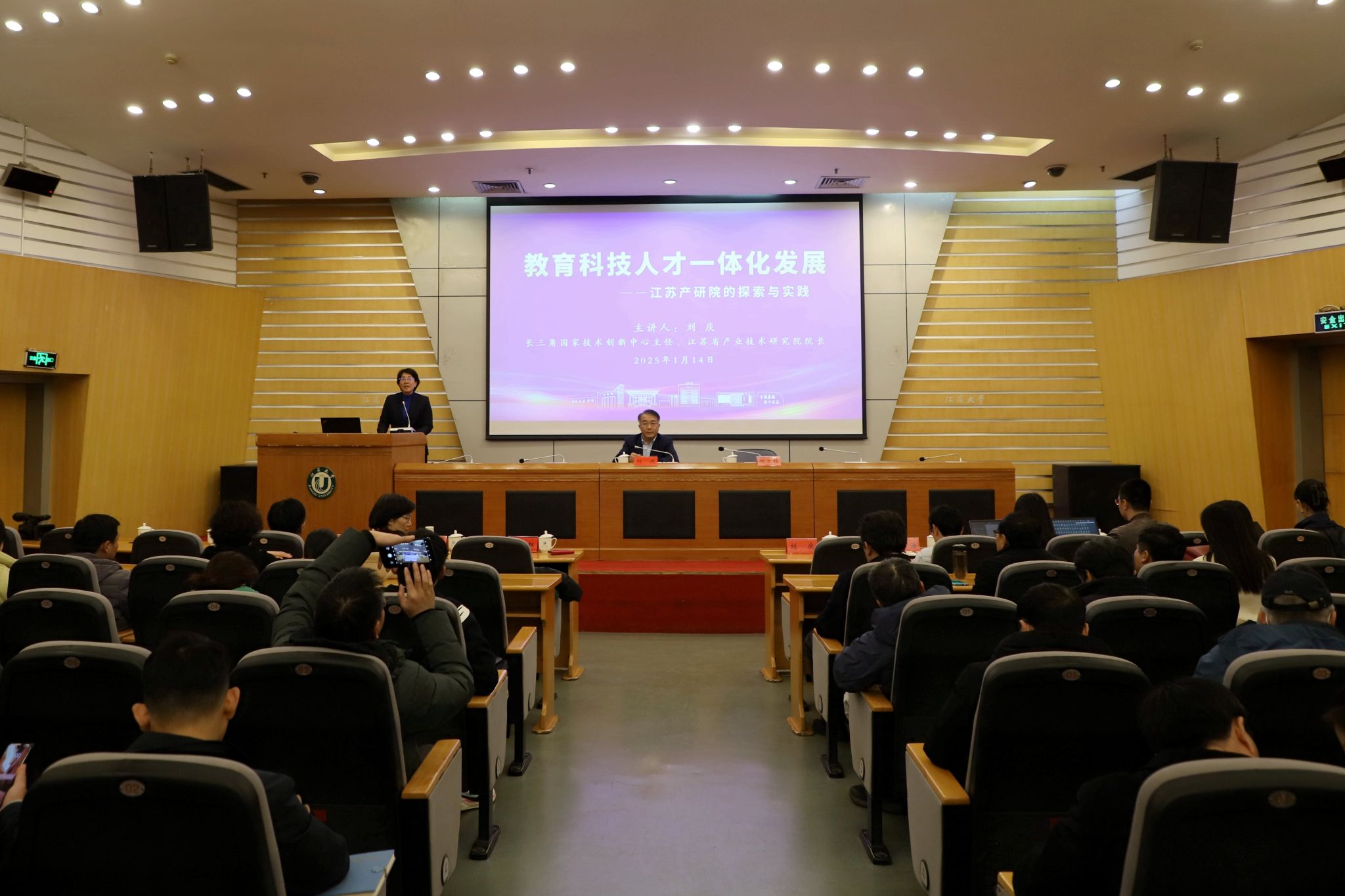 1月14日,长三角国家技术创新中心主任、江苏省产业技术研究院院长刘庆教授应邀为beat365官网师生作题为《教育科技人才“三位一体”促进高质量发展——长三角国创中心的探索与实践》的报告。报告会由校长邢卫红主持。副校长李红、王景全,部分职能部门科级以上领导干部,学院师生代表参加报告会。报告会前,校党委书记李洪波陪同刘庆一行参观了校史馆,深入了解学校的发展历程及近年来取得的成就。