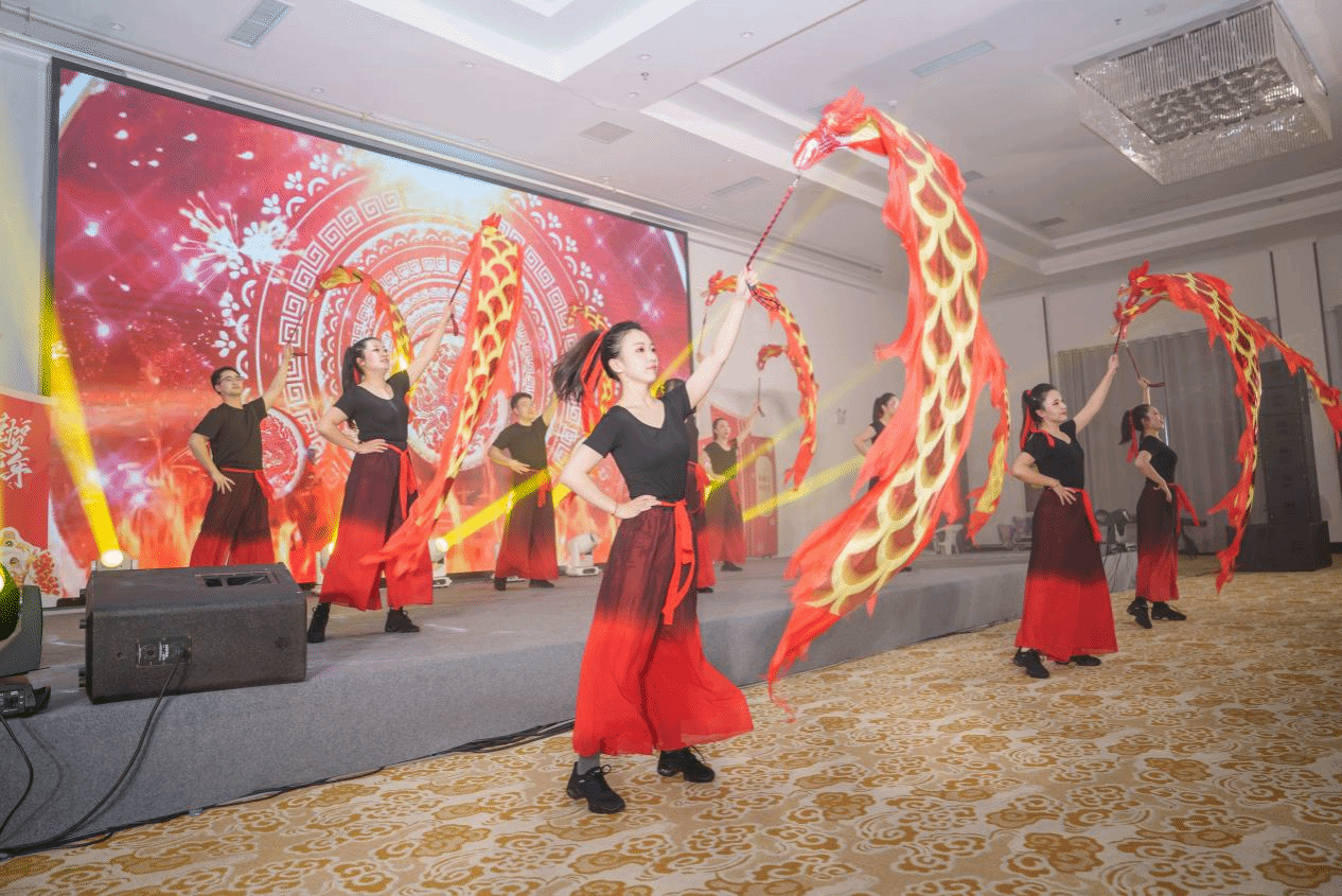 联欢会在开场舞《彩带龙舞》中拉开序幕,歌曲《上春山》《祖国不会忘记》《朋友、我们的未来不是梦》《我爱祖国的蓝天》、舞蹈《LET'S DANCE》《实验敬业阵线联盟》《感谢》《向快乐出发》、朗诵《读中国》《雨中的江南》、京剧《白蛇传》、群体脱口秀《快乐的教务之家》……来自机关各部门的教职工用丰富多彩的节目展现了机关人员凝心聚力、团结奋斗的精神风貌。联欢会在《众人划桨开大船》大合唱中落下帷幕。