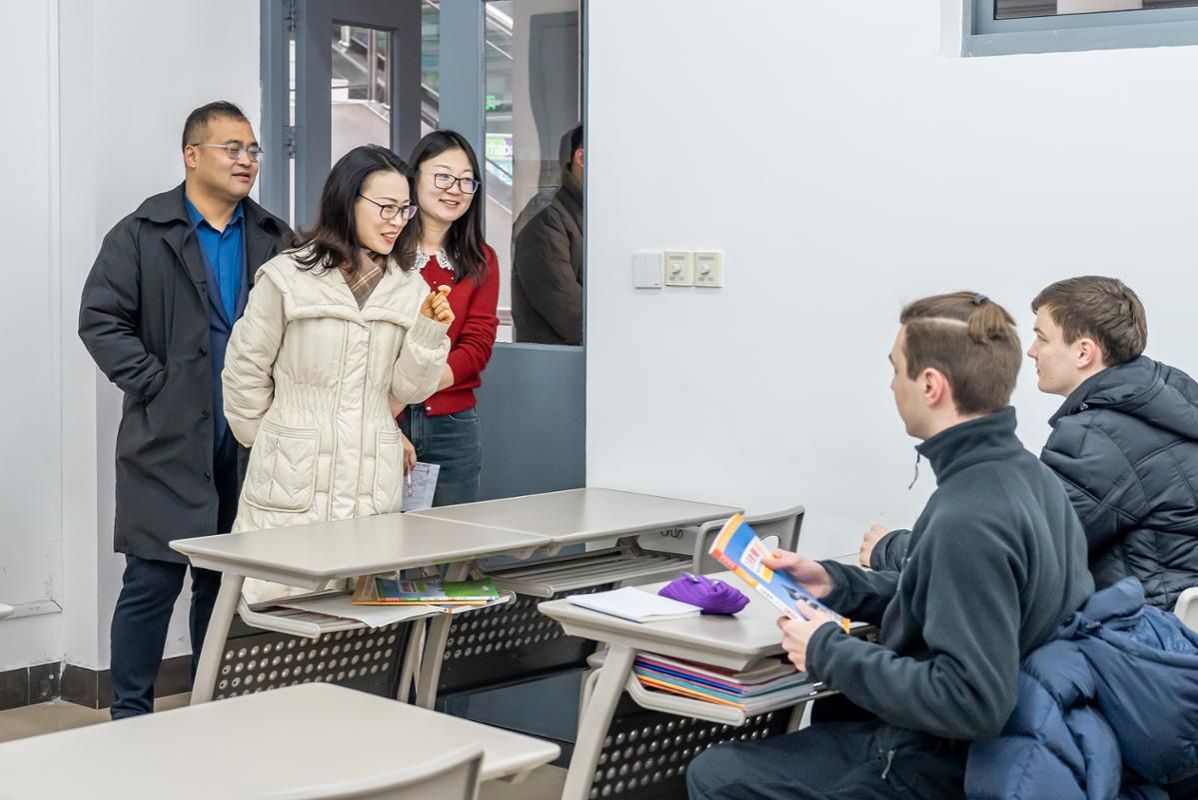 升国旗仪式后,校领导带队前往各教学楼检查新学期教学秩序。