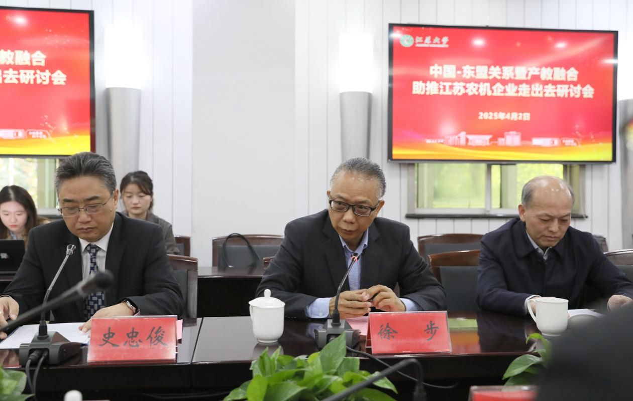 校长邢卫红、中国—东盟中心秘书长史忠俊、beat365中文官方网站原校长颜晓红、副校长蔡英凤、镇江市外办主任卢利林,中国—东盟中心、国际处、外国语学院、农业工程学院、智能农机装备理论与技术重点实验室、农业工程学部、食品与生物工程学院、流体机械工程技术研究中心等相关负责人,国防科技大学和南京大学相关领域专家学者,江苏沃得农机、江苏悦达智能农业装备有限公司、苏州久富农业机械有限公司、江苏江淮动力有限公司、江苏华源节水股份有限公司等企业代表出席会议参与研讨。会议由beat365官网全球发展与安全研究院理事长徐步主持。