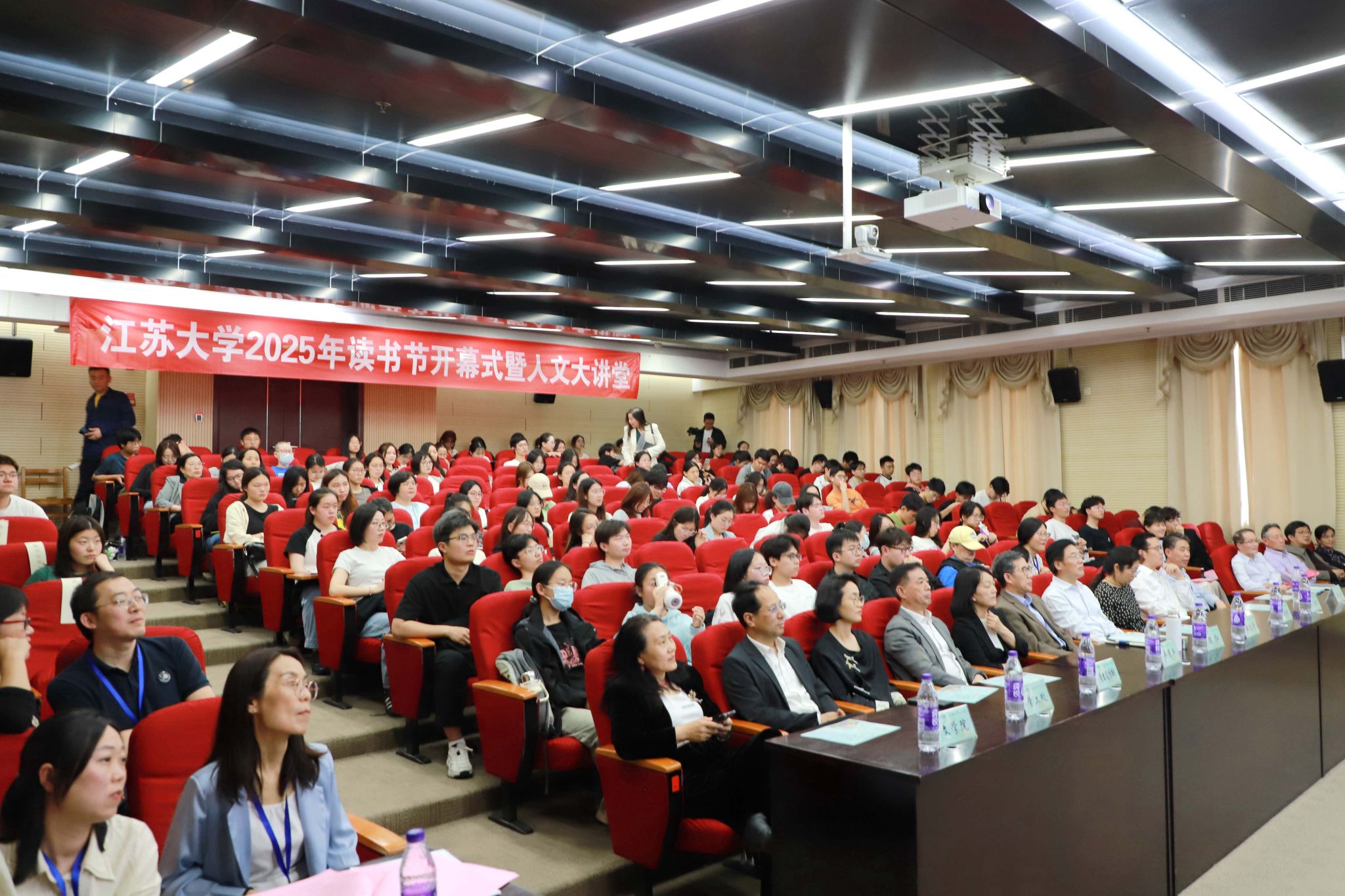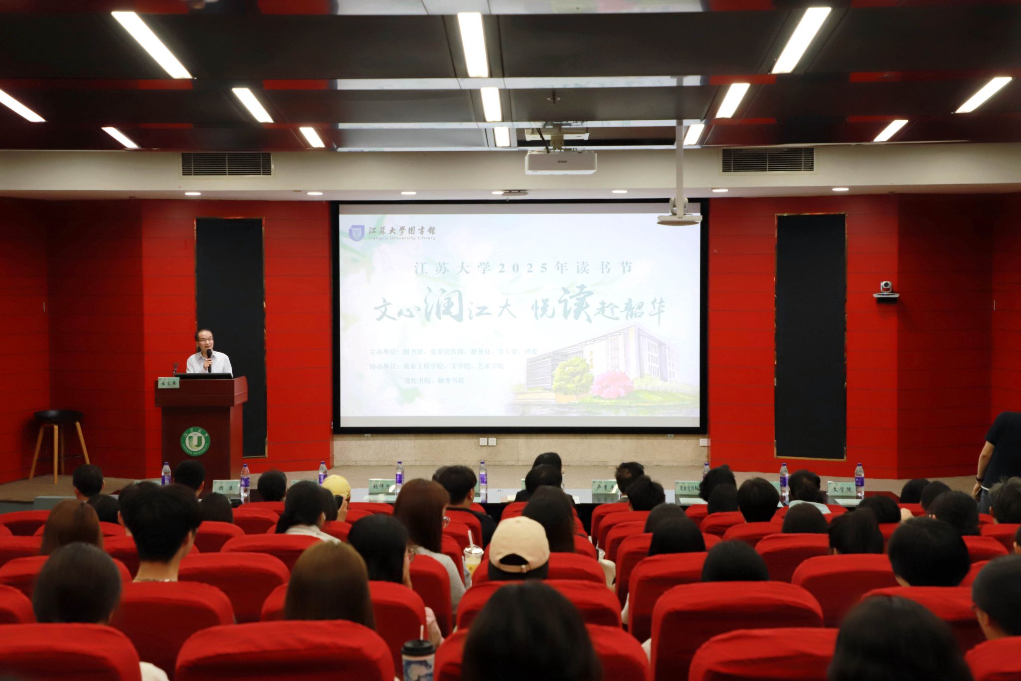4月23日,以“文心润江大,悦读趁韶华”为主题的2025年读书节开幕式暨人文大讲堂在图书馆一楼报告厅举行。副校长陈红,中央电视台《百家讲坛》主讲人、复旦大学教授段怀清,镇江市赛珍珠研究会会长卢章平,二级巡视员、赛珍珠研究会常务副会长张伟清出席开幕式。学校职能部门、学院和书院负责人,以及来自全校各学院的近200名师生参加开幕式。开幕式由图书馆党委书记、馆长王谦主持。