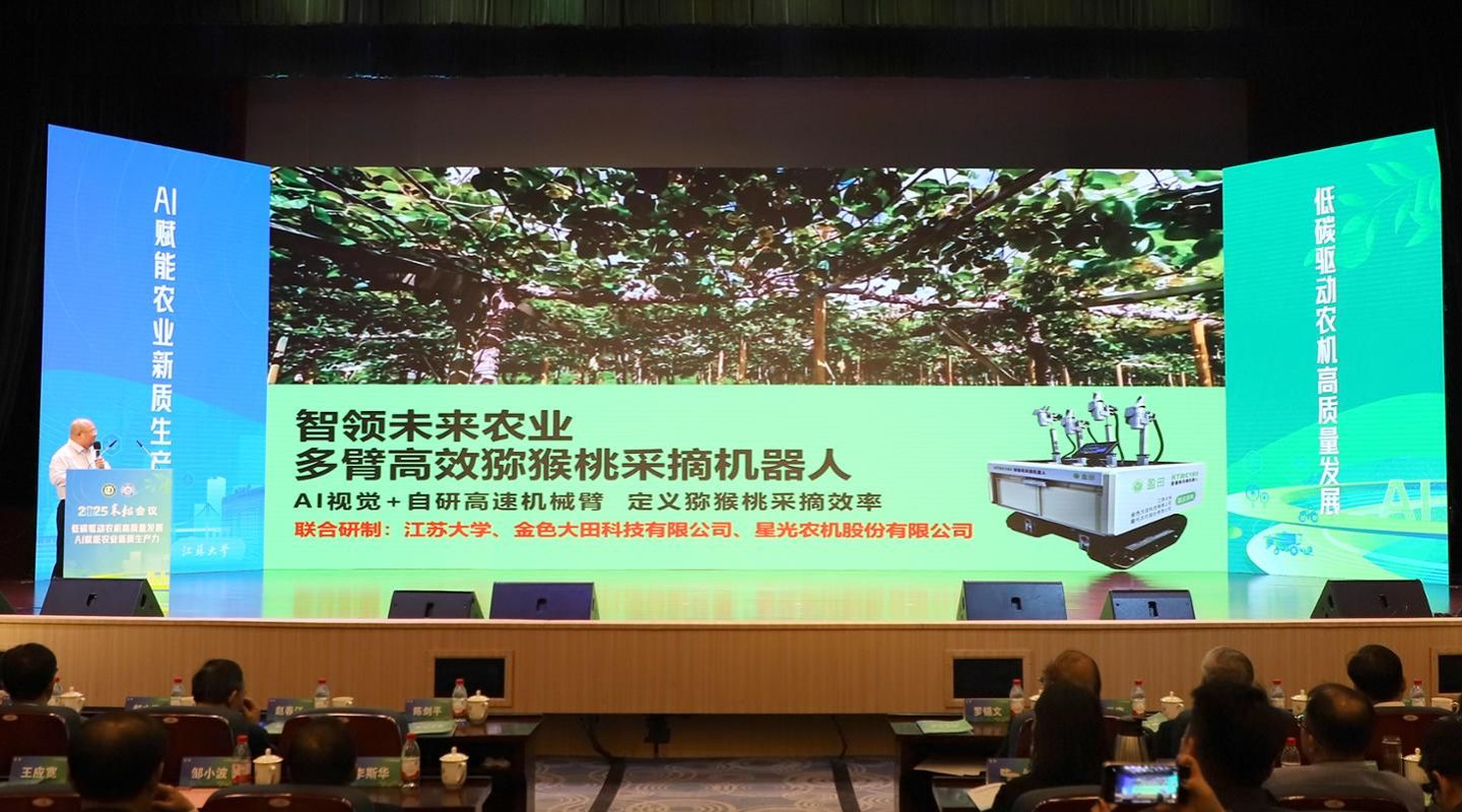 开幕式上举行了beat365中文官方网站创新成果发布环节。陈学庚院士团队发布农田残膜高效回收关键技术及装备、“小麦+”套种全程机械化关键技术及装备;李耀明教授团队发布再生稻单产提升农机农艺融合关键技术与示范;尹必峰教授团队发布大马力混合动力拖拉机共性关键技术与新产品创制;刘继展教授团队发布生产型多臂高速猕猴桃采摘机器人;杨宁教授团队发布江大田芯1号作物病害检测专用芯片。