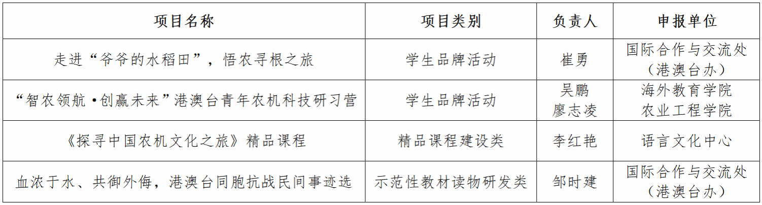 《“智农领航·创赢未来”港澳台青年农机科技研习营》项目带领港澳台青年了解中国农机发展历程,参观智能农业装备研发成果,体验智慧农场运作,深入农机龙头企业实践,增进港澳台青年对祖国农业现代化发展的了解,培养知农爱农的创新人才。