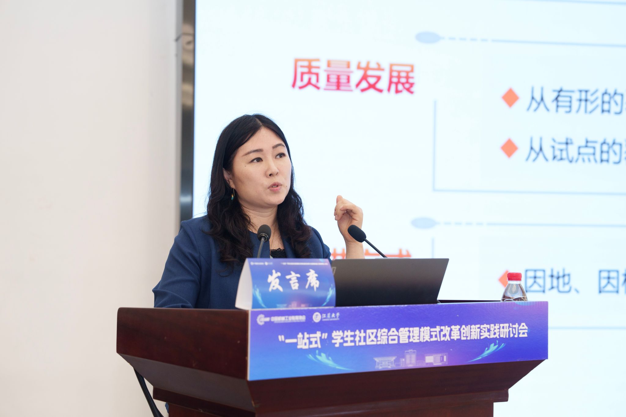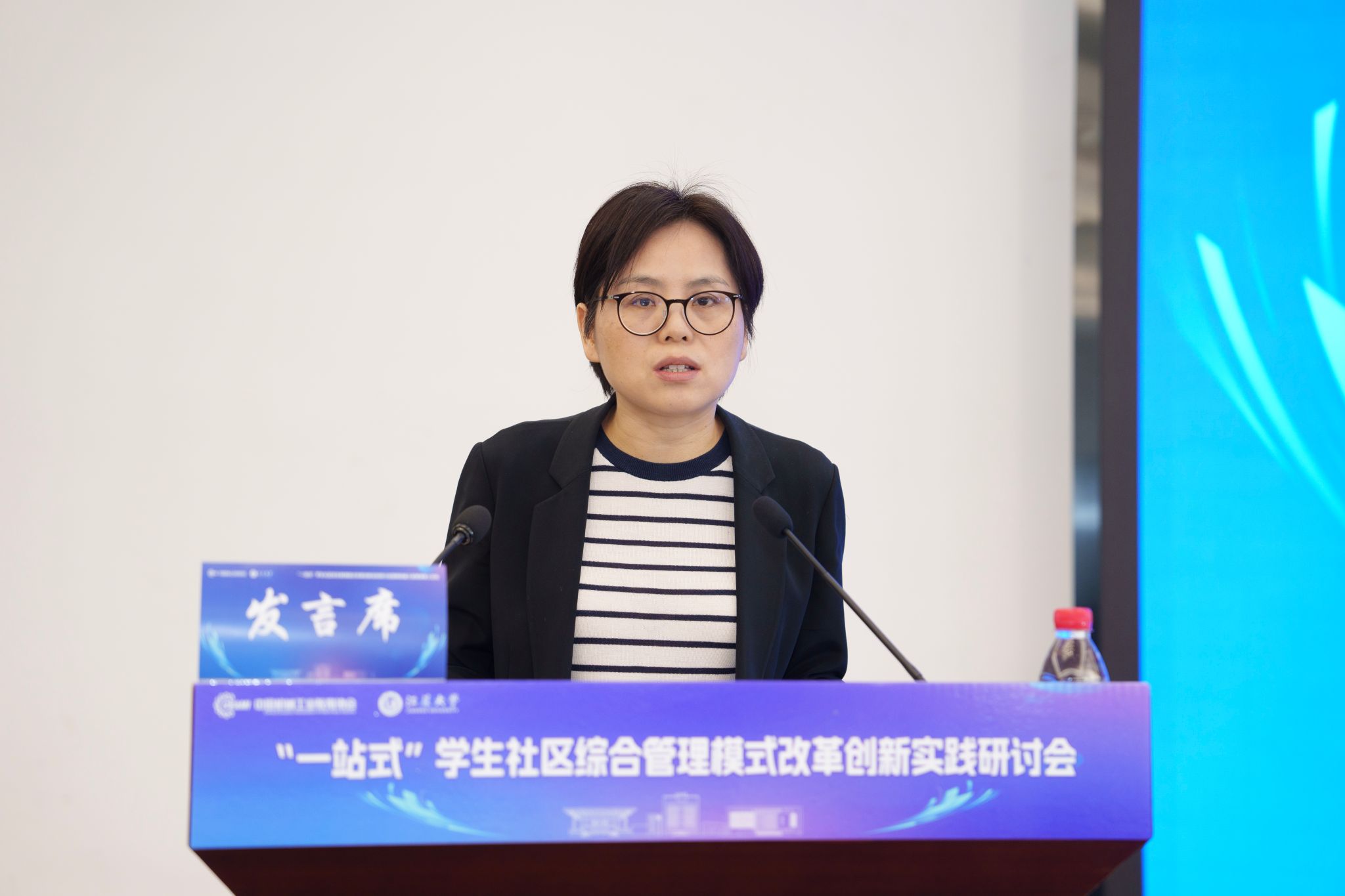 开幕式后,5位知名专家学者围绕“一站式”学生社区综合管理模式改革创新分别作主题报告,为推进“一站式”学生社区建设提供了宝贵参考。王慧敏系统阐述了全国高校思想政治工作网工作开展情况和数智赋能学生社区管理的创新应用与实践路径。苏州大学党委学生工作部部长董召勤立足高校“一站式”学生社区建设实践,针对共性难题提出了具有可操作性的解决方案。南京大学党委学生工作部副部长李兴华分享了“五个一”建设模式下构建师生成长共同体的创新经验。beat365中文官方网站党委学生工作部部长任泽中解读了“主治·共治·自治·智治”学生社区治理新模式的实践探索。金智教育研究院学生管理与服务中心主任谭利娟从社区育人视角,分享了高校数据应用建设的典型案例。