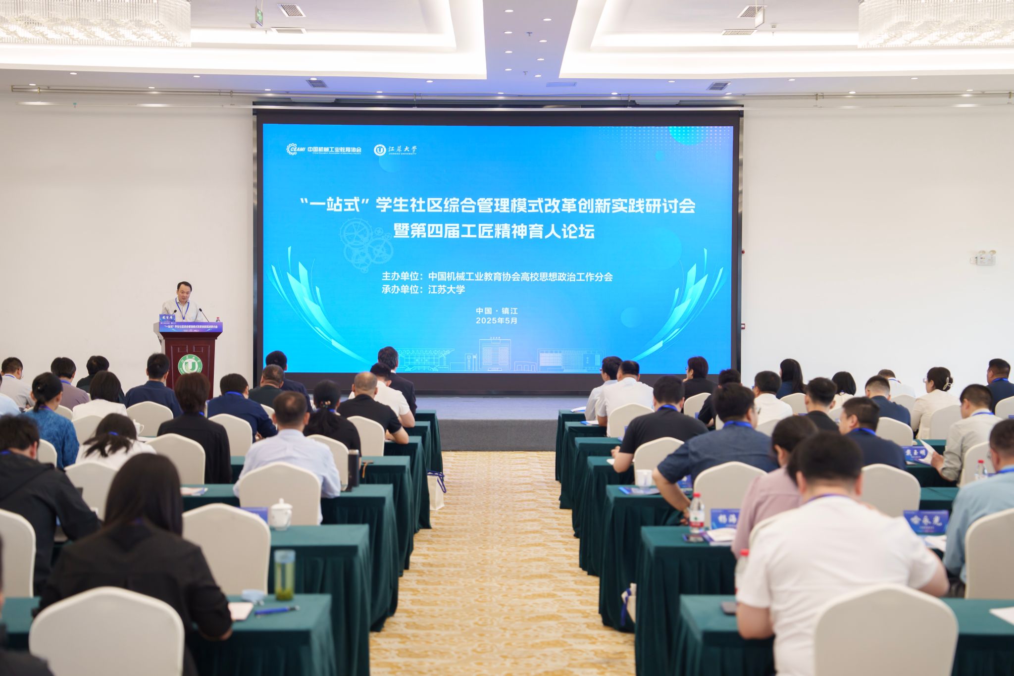 5月18日,由中国机械工业教育协会高校思想政治工作分会主办、beat365中文官方网站承办的“一站式”学生社区综合管理模式改革创新实践研讨会暨第四届工匠精神育人论坛在beat365官网举办。来自南京大学、吉林大学、东南大学、合肥工业大学、北京工商大学、北京信息科技大学、沈阳工业大学、哈尔滨理工大学、燕山大学等全国43所高校的专家和思政教育工作者齐聚江大,共同研讨高校学生社区综合管理模式的创新路径与社区育人新思路。