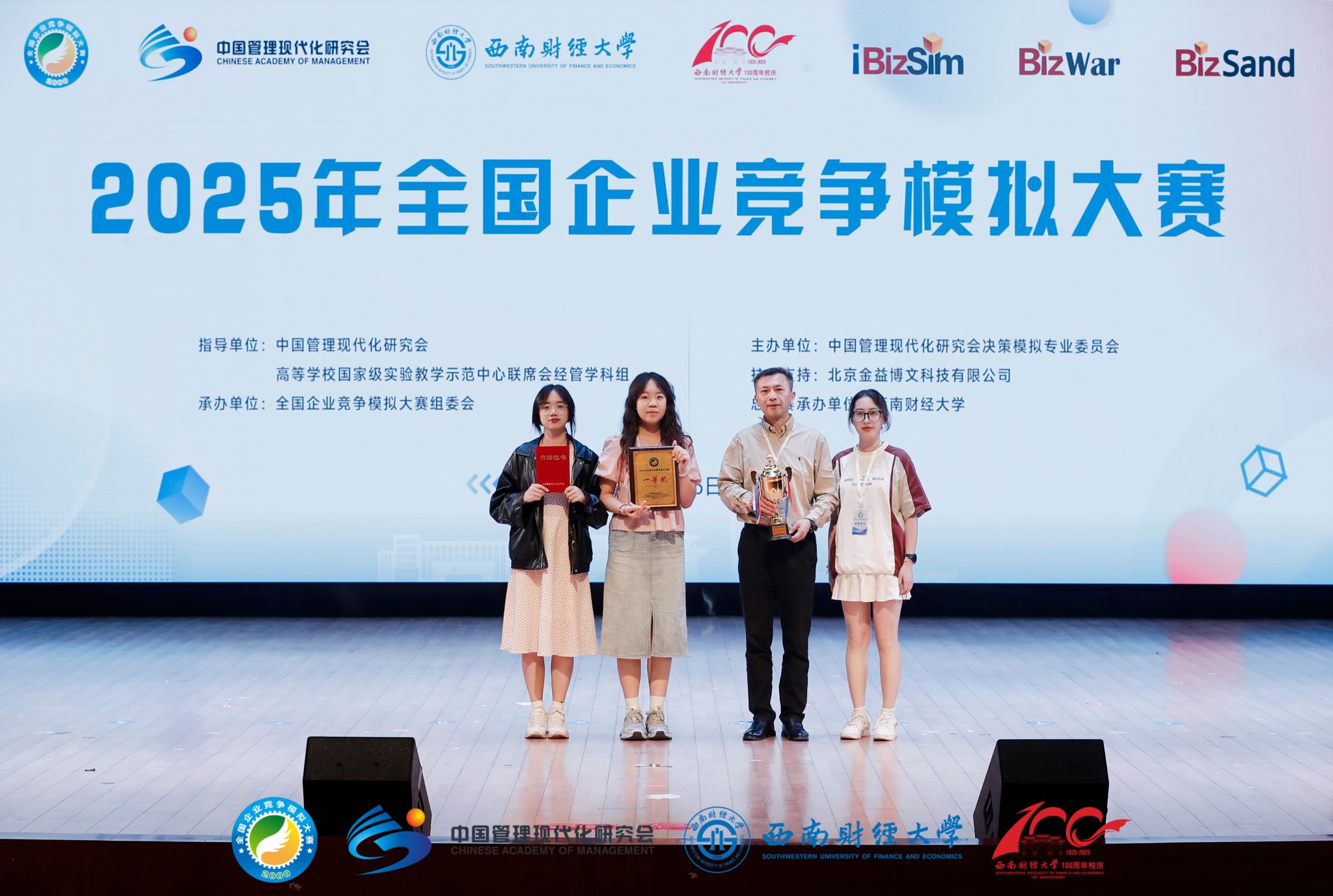 5月18日,2025年全国企业竞争模拟大赛总决赛在西南财经大学落下帷幕。beat365官网管理学院学生曹宇航、高若瑜、陶玫予由教师李毅心指导带队,在总决赛中荣获一等奖,学校获评优秀组织奖。李毅心受邀在大赛数智管理教育教学研讨会上作主题报告分享。