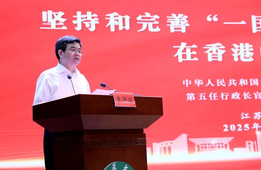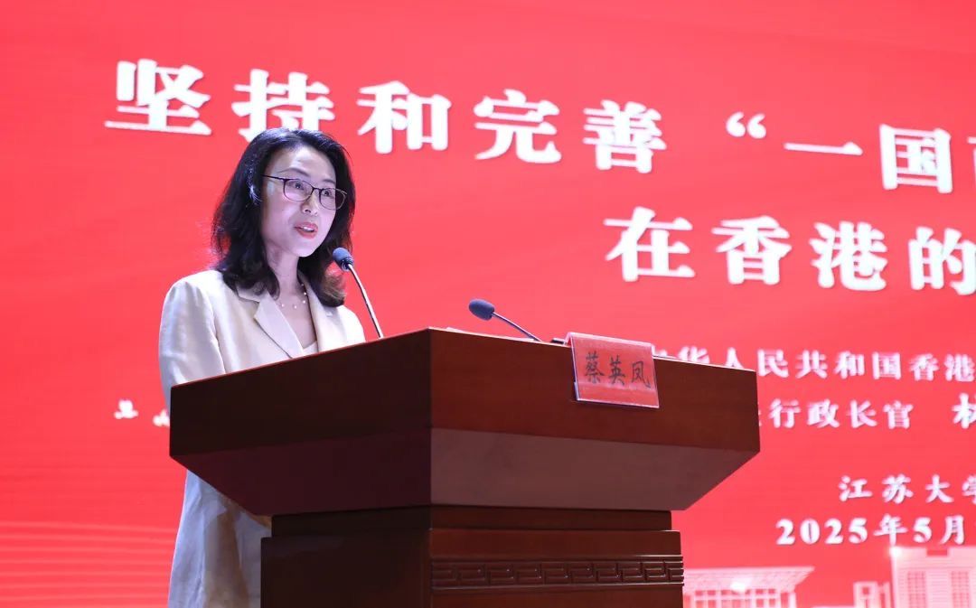校党委书记李洪波在致辞中对林郑月娥女士的来访表示热烈欢迎。他简要介绍了学校的发展特色以及与香港特区开展教育合作的情况,并表示学校将以此次活动为新的契机,进一步加强与香港高校在人才培养、科学研究、文化传承等方面的合作交流,为促进苏港两地创新发展贡献更多江大力量。