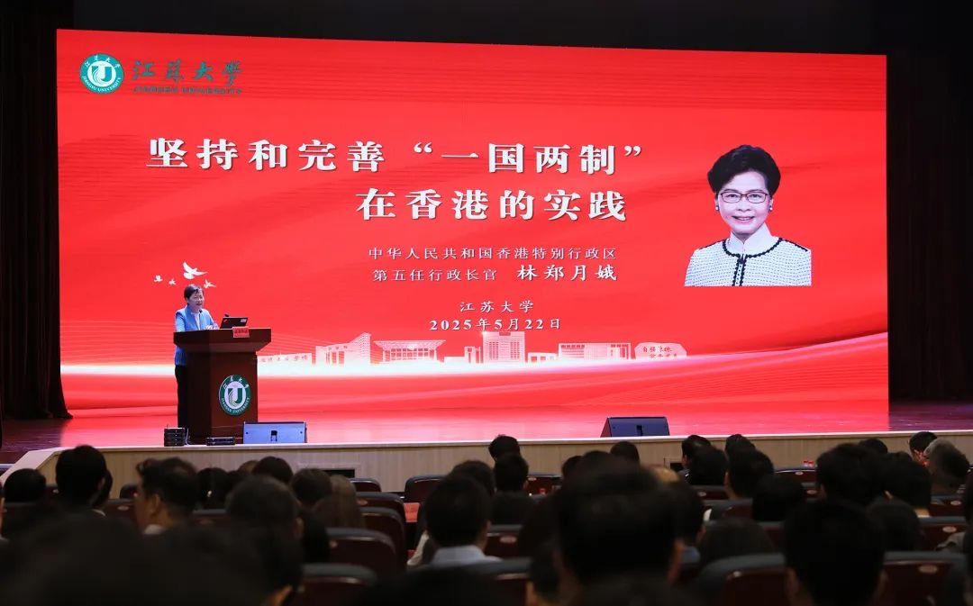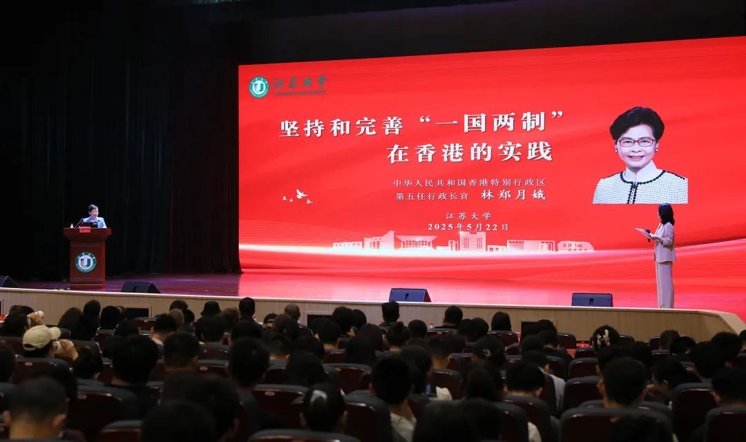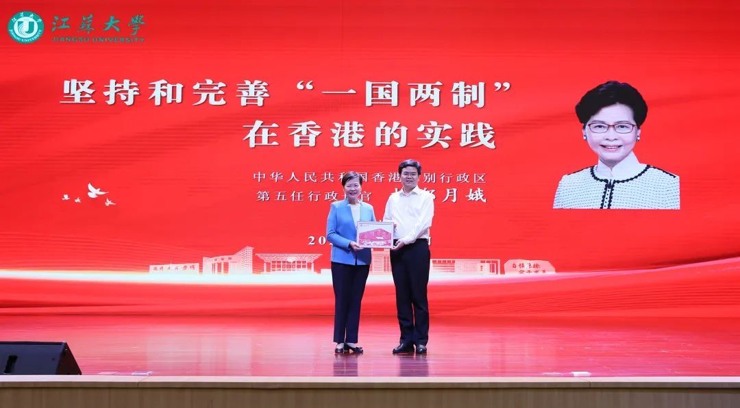 5月22日,香港科技经贸考察团一行二十余人到学校考察调研。香港特别行政区第五任行政长官、考察团荣誉团长林郑月娥应邀在小礼堂作题为《坚持和完善“一国两制”在香港的实践》的专题报告,并与师生亲切互动。