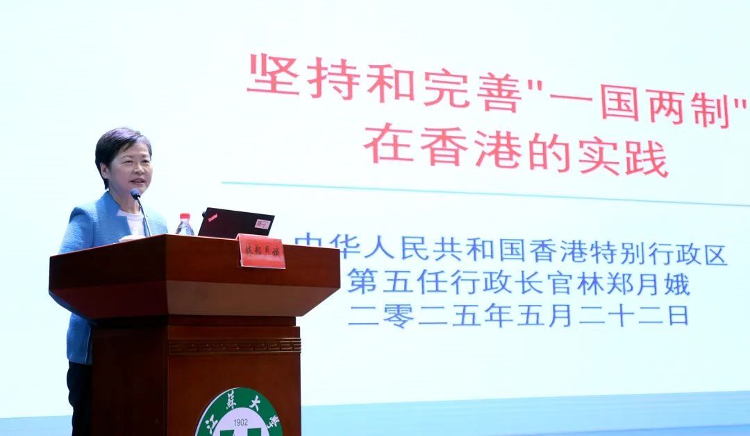 报告中,林郑月娥结合自身工作经历,详细介绍了 “一国两制”政策的历史背景以及在香港的实践历程。她分享了自己在担任香港特区第五任行政长官期间,在中央政府支持下,依据《中华人民共和国宪法》和《香港特别行政区基本法》,带领香港战胜巨大挑战的实践。林郑月娥表示,自己对香港的未来充满信心,香港“背靠祖国,面向世界”,正积极打造国际高端人才集聚高地,为强国建设和民族复兴作出更大贡献。她还介绍了香港多项吸引海内外人才的措施,并欢迎大家赴港学习、就业和发展。