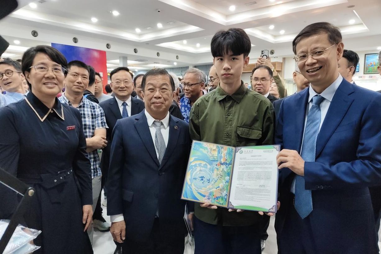 5月20日,邢卫红一行参加江苏—马来西亚高校合作交流活动暨留学江苏展。江苏省人民政府省长许昆林、马来西亚国会议员陈国伟、马来西亚上议员理事会主席拿督斯里凯鲁丁·沙末,江苏省人民政府秘书长吕德明、马来西亚教育交流协会会长马汉顺、马来西亚种植及原产业部部长顾问陈耀宗一行来到beat365中文官方网站展位。邢卫红向许昆林介绍了beat365中文官方网站国际人才发展状况,许昆林与来华留学新生家长亲切对话,并为来华留学新生颁发录取通知书。马来西亚科学院院士陈国银参加活动。