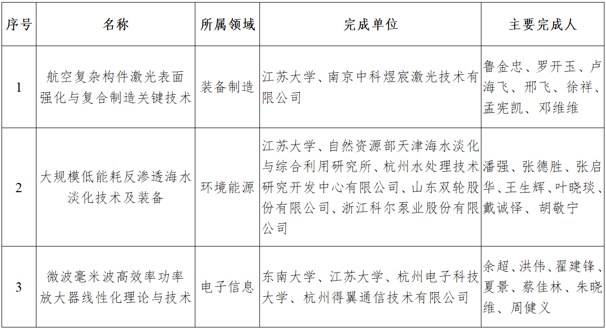 由机械工程学院教授鲁金忠牵头申报的“航空复杂构件激光表面强化与复合制造关键技术”,面向航空复杂构件长寿命高可靠服役需求,以激光冲击强化、激光增材制造技术为代表,形成了具有原创性的高性能航空复杂构件激光表面强化和复合制造理论与成套关键技术,突破了整体叶盘、舱门摇臂、垂尾梁、盾构机等复杂构件的制造难题。核心技术授权中国发明专利45件、授权美国专利12件。相关技术应用到行业头部企业,引领激光表面强化与复合制造理论和技术的创新发展,取得显著的经济效益、社会效益和国防效益。研究成果获得中国专利金奖2项、江苏省科学技术奖一等奖3项、中国产学研合作创新成果奖一等奖1项等。
