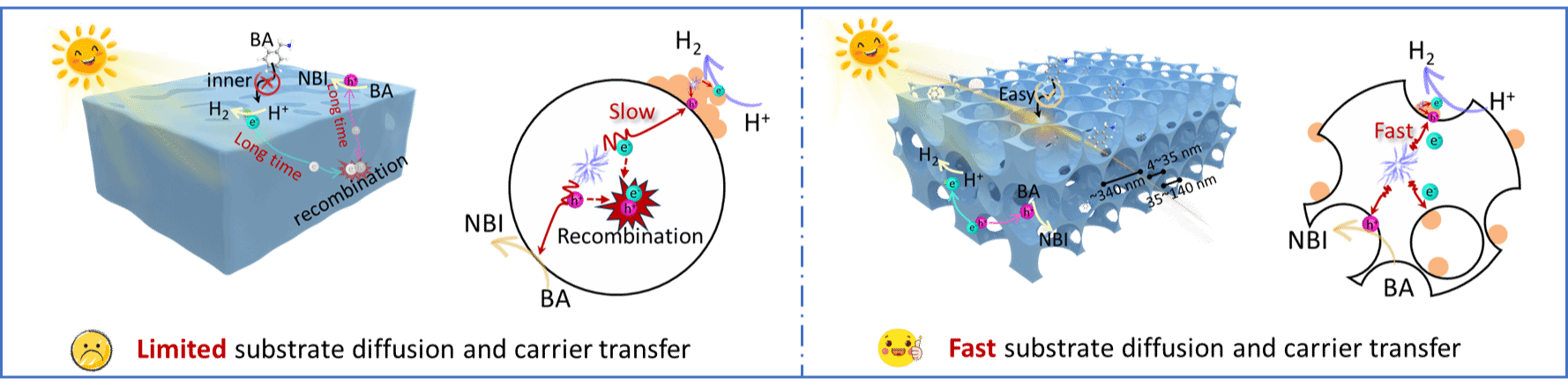 近日,材料科学与工程学院师生在国际顶级期刊Angew发表最新研究论文Improving Mass Transport and Charge Transfer in COF-Based Photocatalysts with Three-Dimensional Ordered Macropores for Benzylamine Oxidation and Hydrogen Evolution。beat365中文官方网站为论文第一完成单位,材料科学与工程学院博士生孙丽娟和化学化工学院研究员颜伟城为论文共同一作,材料科学与工程学院教授刘芹芹、副教授周亚洲及湖北文理学院教授梁桂杰、华沙大学新技术中心副教授Silvio Osella为论文共同通讯作者。