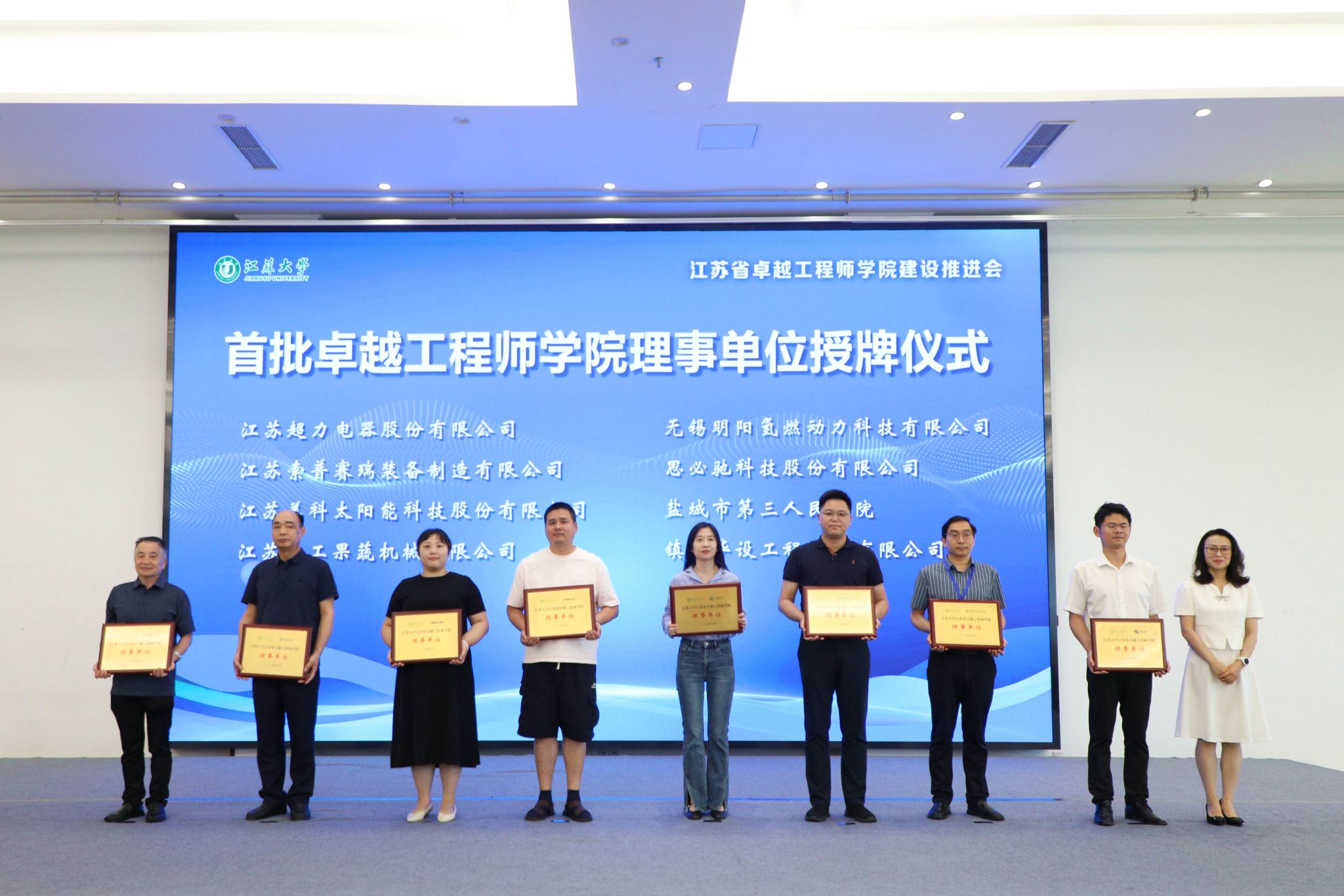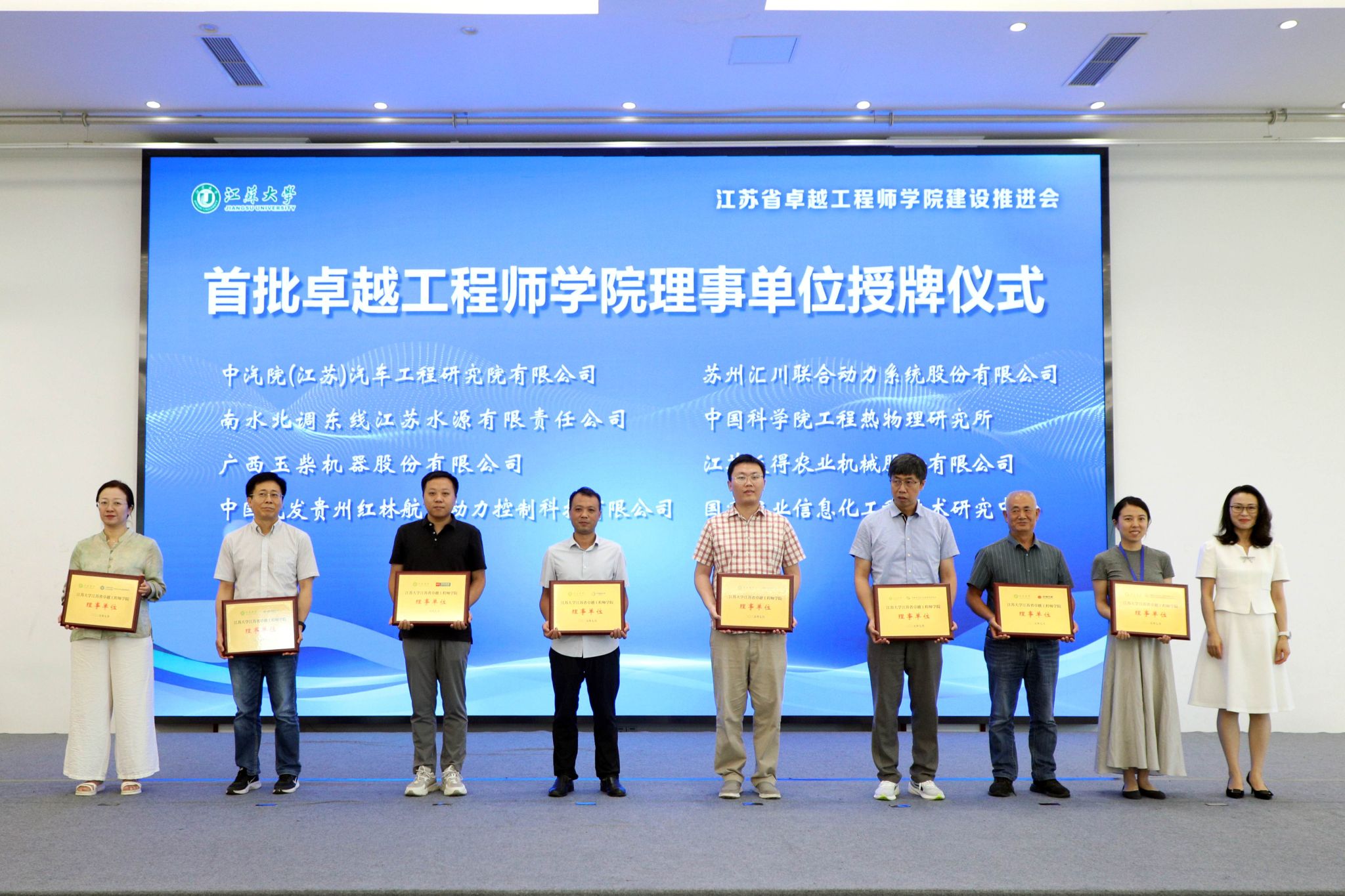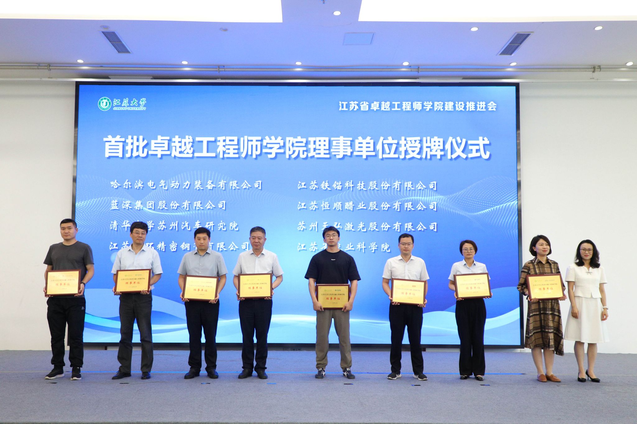 7月3日,beat365中文官方网站江苏省卓越工程师学院建设推进会暨理事会成立会举行。副校长、研究生院院长、卓越工程师学院院长蔡英凤,中汽院(江苏)汽车工程研究院有限公司、国家农业信息化工程技术研究中心、南水北调东线江苏水源有限责任公司、中国科学院工程热物理研究所、广西玉柴机器股份有限公司、中国航发贵州红林航空动力控制科技有限公司、江苏省农业科学院、苏州汇川联合动力系统股份有限公司、江苏沃得农业机械股份有限公司、蓝深集团股份有限公司等30多家央国企和民企单位代表、19家卓工项目建设团队的校内外负责人,人事处、教务处、科技处、产学研处、学工处、各学院主要负责人等100余人出席会议。会议由研究生院常务副院长、卓越工程师学院执行院长朱孝勇主持。
