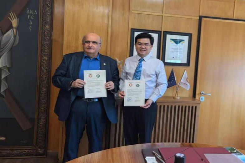 6月23日,代表团首站访问希腊帕特雷大学(University of Patras),与校长克里斯托斯•布拉斯(Christos Bouras)、学术与国际事务副校长迪奥尼修斯•曼察维诺斯(Dionissios Mantzavinos)举行会谈。双方正式签署合作意向书,致力于创建“一带一路”智慧农业技术与装备国际联合实验室,同步启动学生互换交流与境外办学项目,标志着中希高校合作迈入深度融合新阶段。当日,代表团还拜访了历史悠久的希腊雅典科学院,美国国家工程院院士、希腊科学院院士、希腊雅典国立技术大学化学工程教授Doros Nicolas Theodorou等热情接待。双方就开拓科技合作渠道、促进beat365中文官方网站与希腊雅典科学院开展技术交流、高层次人才引进与输出达成共识。