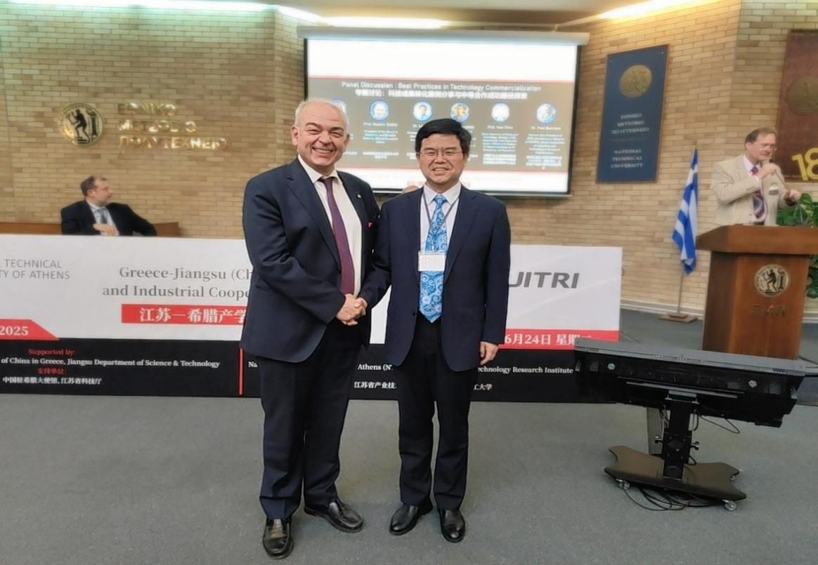 6月24日,代表团在希腊雅典国立技术大学参加“江苏—希腊产学研合作交流会”。江苏省委书记信长星、希腊阿提卡省省长尼科斯·哈扎利亚斯(Nikos Hardalias)、中国驻希腊大使方遒等出席会议,来自两国政府、高校、科研机构和企业的160余位代表参会。会议聚焦人工智能、绿色能源、海洋工程等前沿领域,深入探讨中希在科技创新与成果转化方面的合作潜力,积极拓展双方产学研融合发展的新路径。李洪波一行与雅典国立技术大学校长IOANNIS K. CHATJIGEORGIOU、校董事会理事Sergios Theodoridis对接“一带一路”智慧农业技术与装备相关合作,向希腊高新技术园区、高校院所及科技企业推介beat365中文官方网站技术成果,推动务实对接。代表团还与中国驻希腊大使馆教育参赞王瑾、亚里士多德大学代表TZOUVELEKAS MANOLIS对接了技术转移、学生流动项目合作。