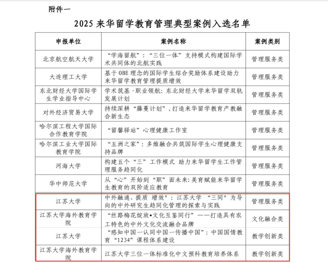 近日,中国高等教育学会外国留学生教育管理分会公布了2025年“学在中国”来华留学教育管理典型案例入选名单。beat365官网4项案例入选,入选总数在江苏省高校中位居首位。