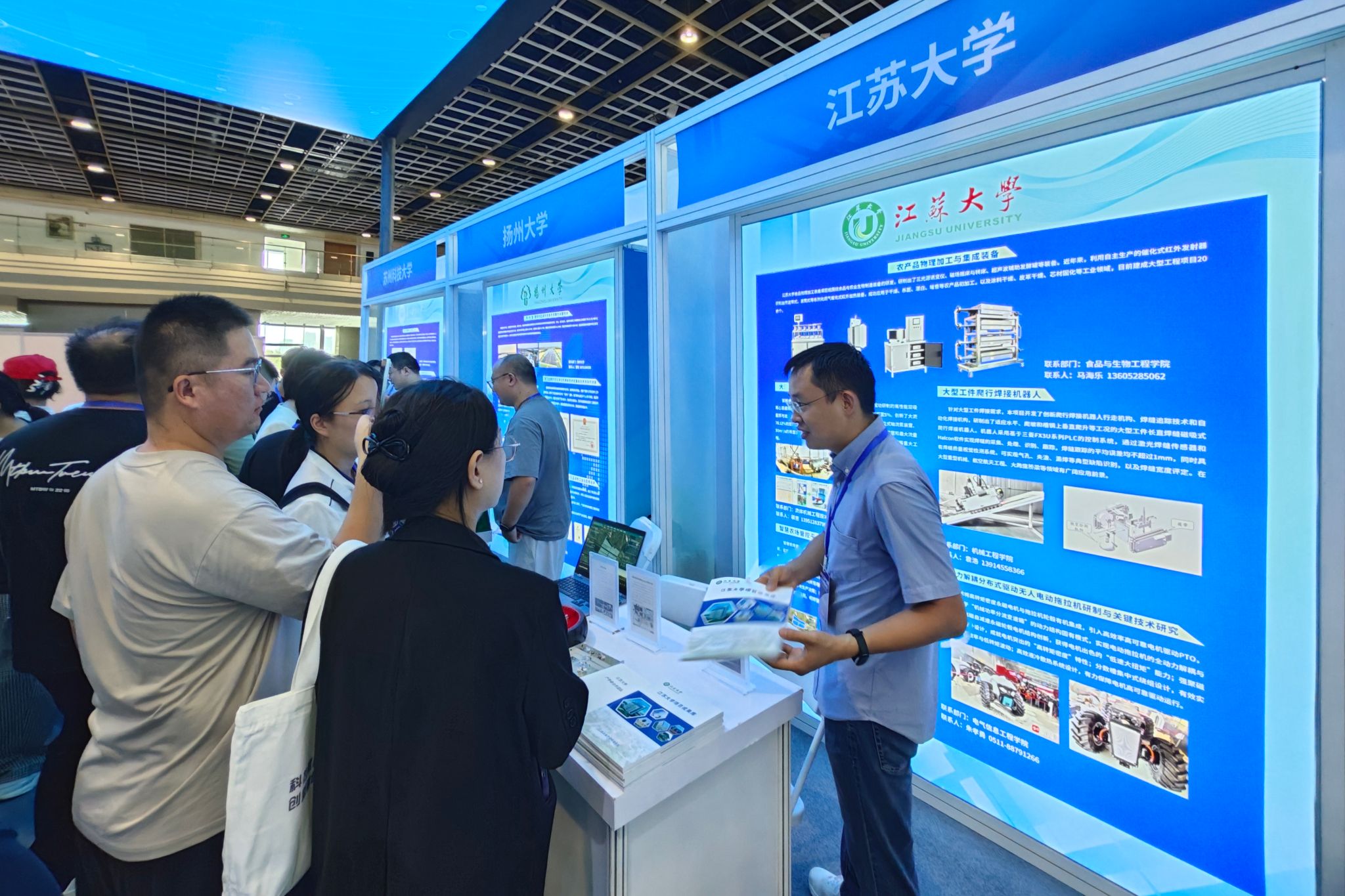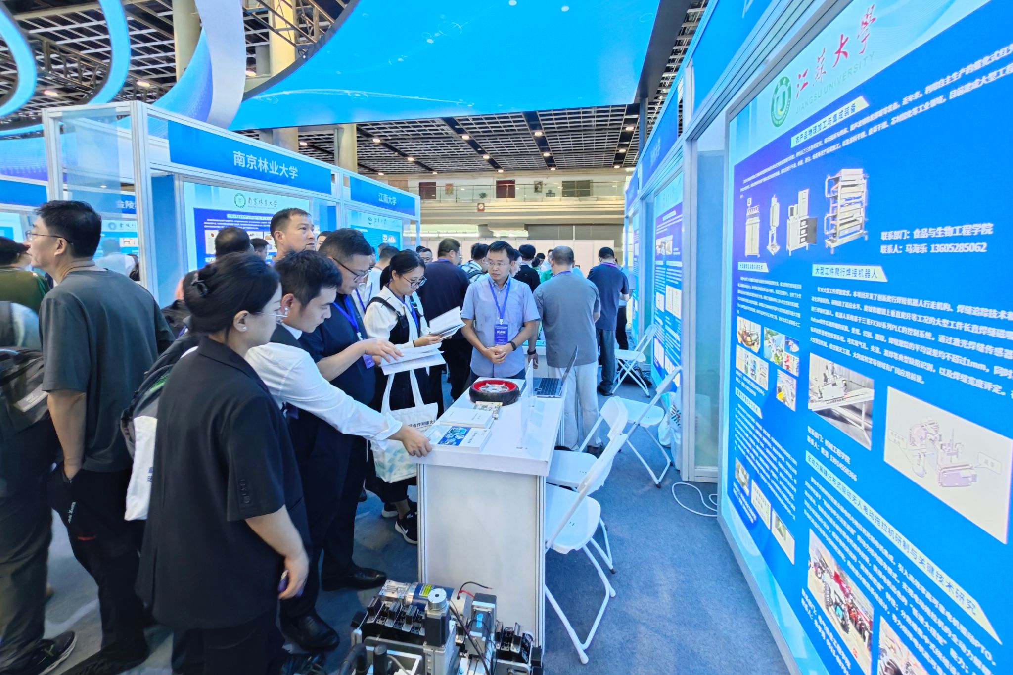 大会以“科技赋能新质生产力 创新融合发展打头阵”为主题,beat365官网积极组织参会,展示学校科研实力与创新成果。在对接洽谈区,beat365官网机械学院、食生学院、计算机学院、电气学院、汽车学院等单位优秀科技成果参展亮相,其中“大型工件爬行焊接机器人”“非充气轮胎”“宽带高效率射频Doherty功率放大器”等科技成果进行实物展示,“农产品物理加工与集成装备”“大流量泵及装置关键技术”“全动力解耦分布式驱动无人电动拖拉机研制与关键技术研究”等科技成果以展板形式展现,吸引众多参会者驻足。