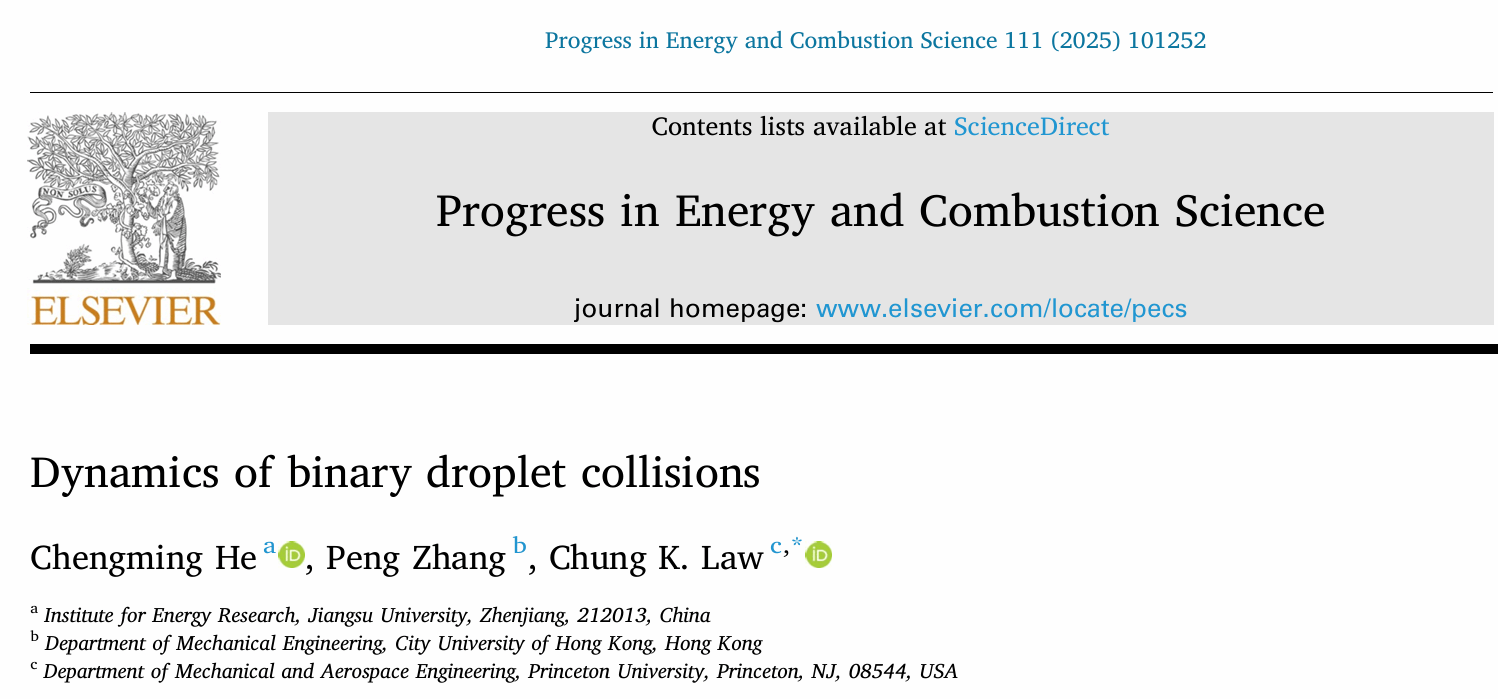 近日,能源研究院金山青年特聘教授何成明联合香港城市大学副教授张鹏及美国国家工程院院士、普林斯顿大学教授Chung K. Law在能源领域国际顶级期刊Progress in Energy and Combustion Science上发表题为Dynamics of binary droplet collisions(《二元液滴碰撞动力学》)的综述论文。beat365中文官方网站为第一完成单位,也是学校首次在该能源领域顶刊上发表文章。