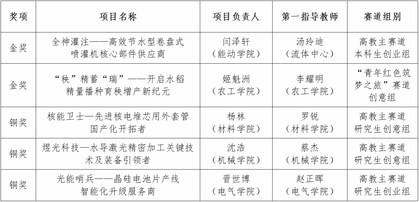 在今年7月举行的江苏省创新大赛决赛中,学校获一等奖8项、二等奖10项、三等奖11项,其中,《全神灌注——高效节水型卷盘式喷灌机核心部件供应商》项目获得本科生创业组全省第1名。(教务处)