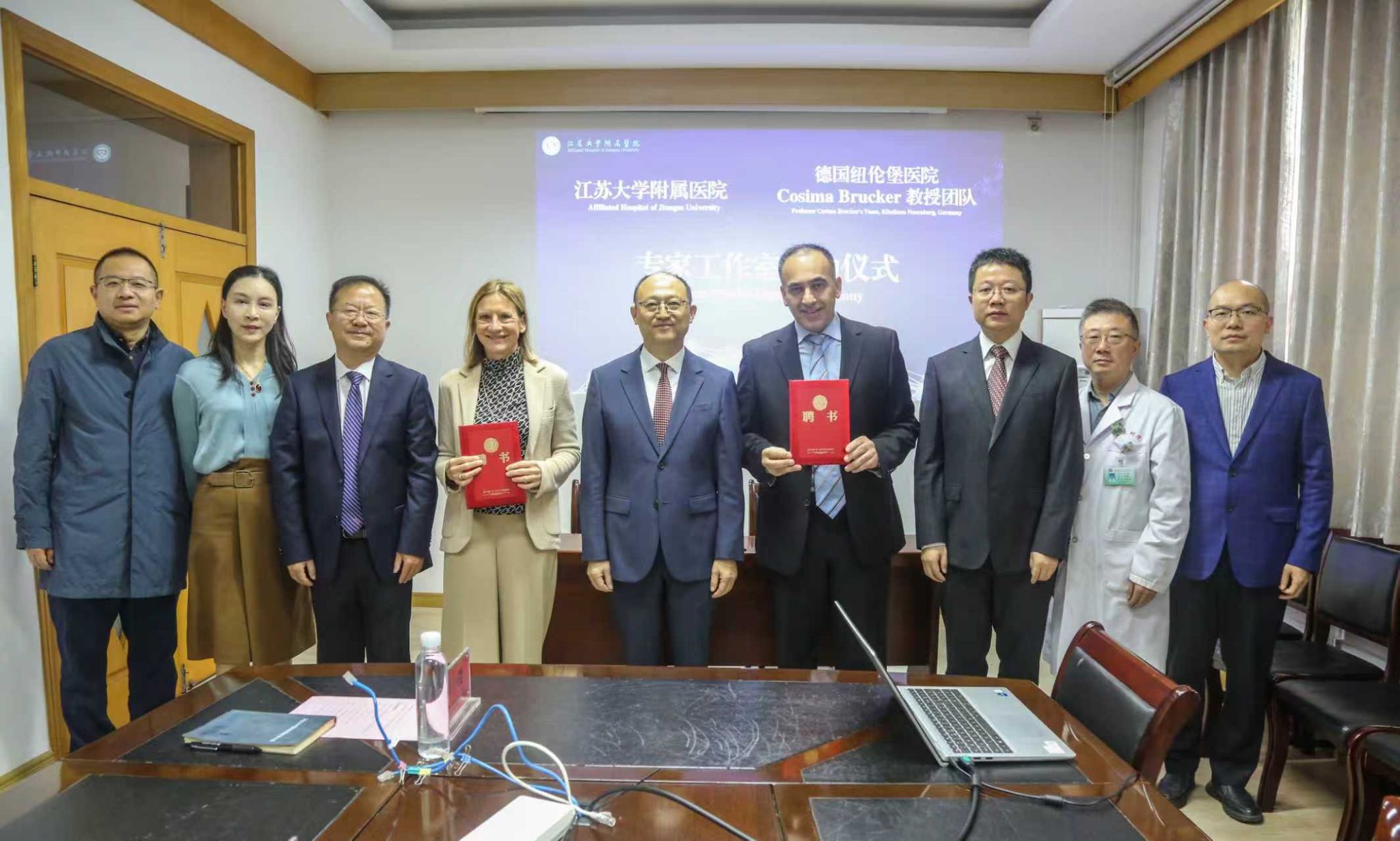 10月20日,附属医院举行外国专家工作室合作签约仪式,邀请德国纽伦堡医院妇科中心主任科西玛·布鲁克教授团队,成立镇江市医疗系统首个外国专家工作室。校党委副书记、附属医院党委书记张济建,附属医院院长陈吉祥等院领导及相关科室负责人参加签约仪式。