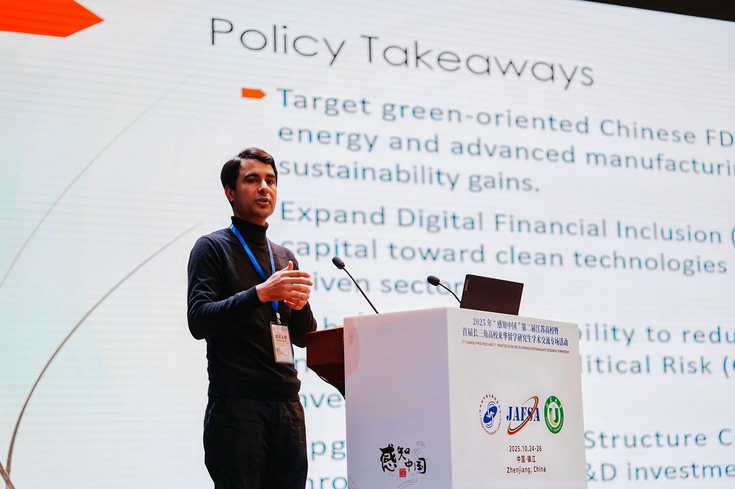 10月25日至26日,国家留学基金管理委员会主办,江苏省高等教育学会外国留学生教育管理研究委员会、beat365中文官方网站承办的2025年“感知中国”第二届江苏高校暨首届长三角高校来华留学研究生学术交流专场活动在校举行。来自江苏、上海、浙江和安徽的55所高校的400余名中外研究生以及带队教师参加活动。