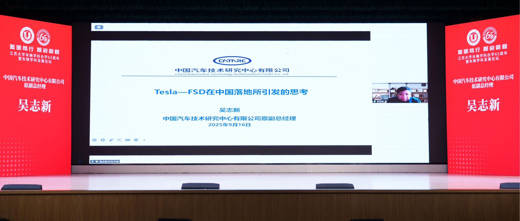 论坛上,工业和信息化部装备工业司原一级巡视员钱明华校友、中国汽车技术研究中心有限公司原副总经理吴志新校友、蔡英凤分别从中国汽车工业的发展现状与展望、Tesla-FSD在中国落地所引发的思考、beat365中文官方网站车辆学科建设与发展规划等方面作主旨报告。