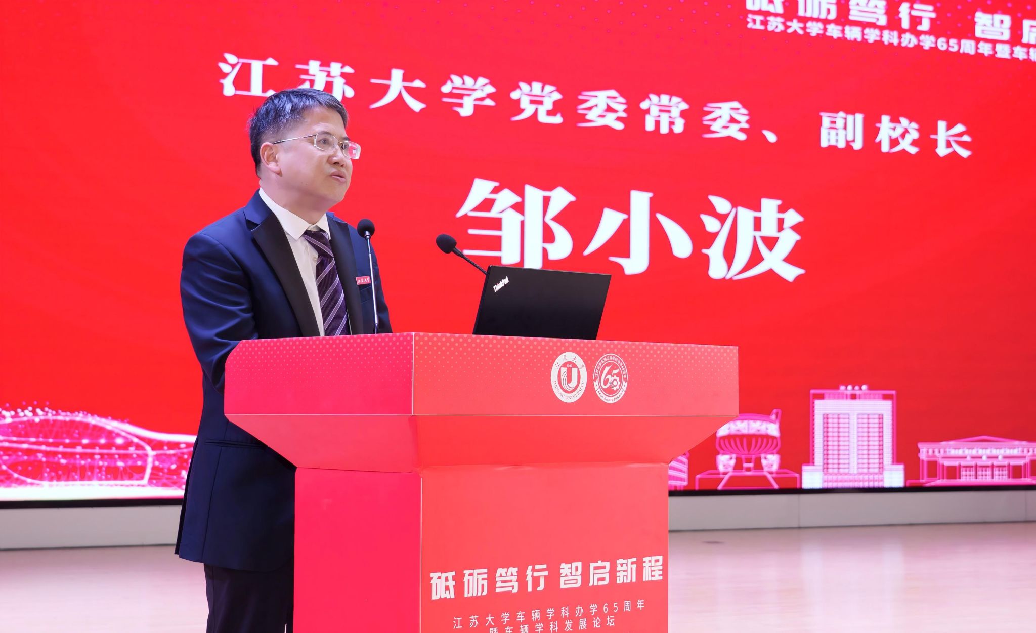 党委常委、副校长邹小波在论坛上致辞,回顾了车辆学科65年的发展历程和学科办学成效。邹小波表示,车辆学科的发展离不开老一辈开拓者、离不开一代代拼搏的汽车人、离不开一批批杰出的校友,希望广大校友与母校加强合作,深度参与到学科科技创新和人才培养中,深化产教融合,推进协同创新,共同为我国汽车与交通事业高质量发展贡献更大力量。
