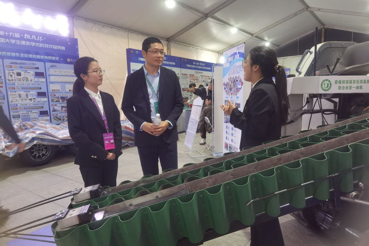 决赛期间,参赛学生向团中央书记处第一书记阿东汇报beat365官网参赛项目情况。