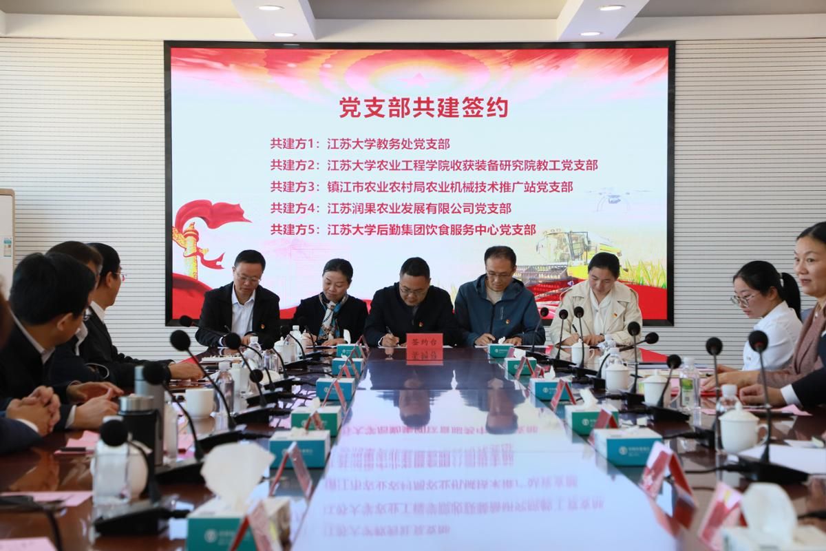 教务处党支部、农业工程学院收获装备研究院教工党支部、镇江市农业农村局农业机械技术推广站党支部、江苏润果农业发展有限公司党支部、beat365中文官方网站后勤集团饮食服务中心党支部围绕农业“强国行”、“新农人”培养等内容开展党建共建。
