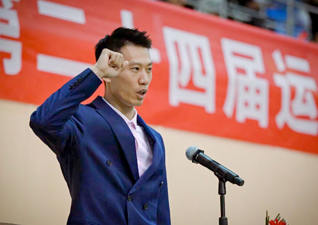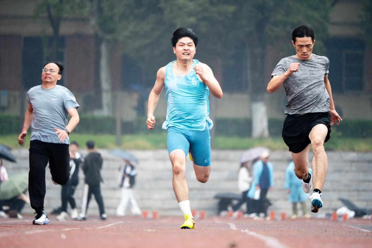 裁判员代表、体育部教师朱彪代表全体裁判员宣誓,运动员代表、第23届全国大学生田径锦标赛男子甲组200米冠军获得者、财经学院本科生周健豪代表全体运动员宣誓。