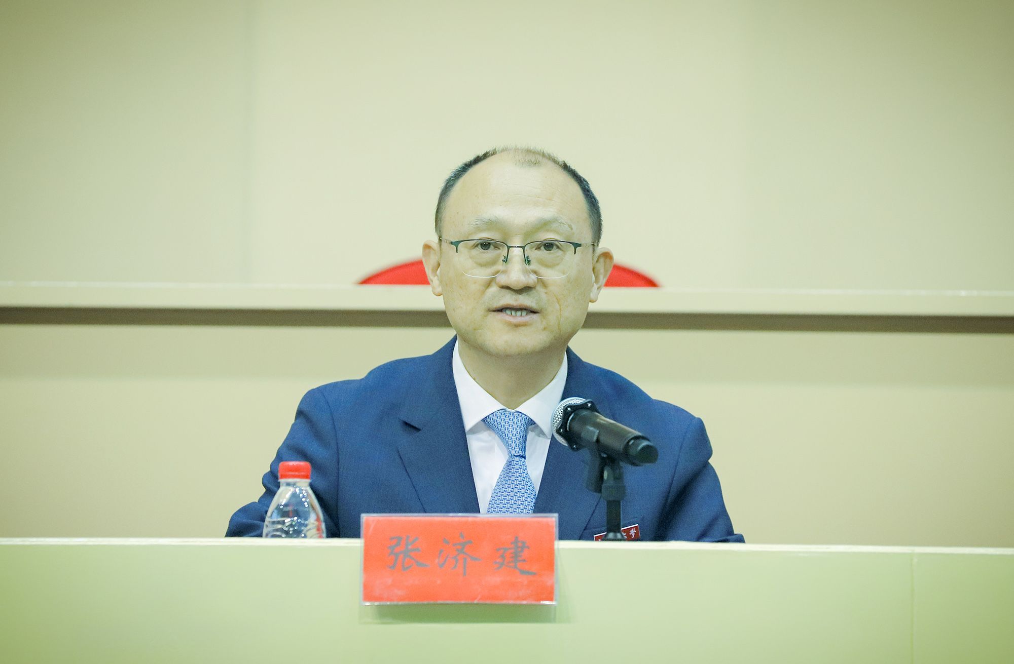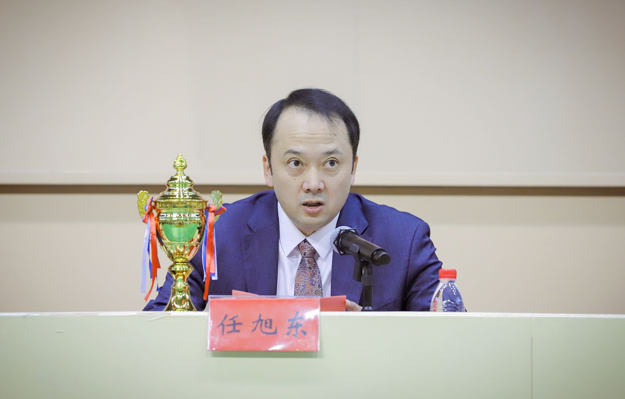 校党委副书记张济建宣读了第二十三届运动会团体总分前八名学院名单及教工群众体育先进集体表彰决定,主席台领导为受表彰单位颁奖。