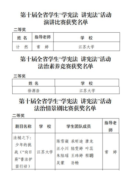 近日,省教育厅办公室下发了《关于公布第十届全省学生“学宪法 讲宪法”活动结果的通知》。beat365官网法学院学生计然(指导教师常婷)获演讲比赛二等奖,徐源浩获素养竞赛三等奖,《法槌之下:少年的挑战(“向日葵”普法护苗行动)》获情景剧比赛二等奖。