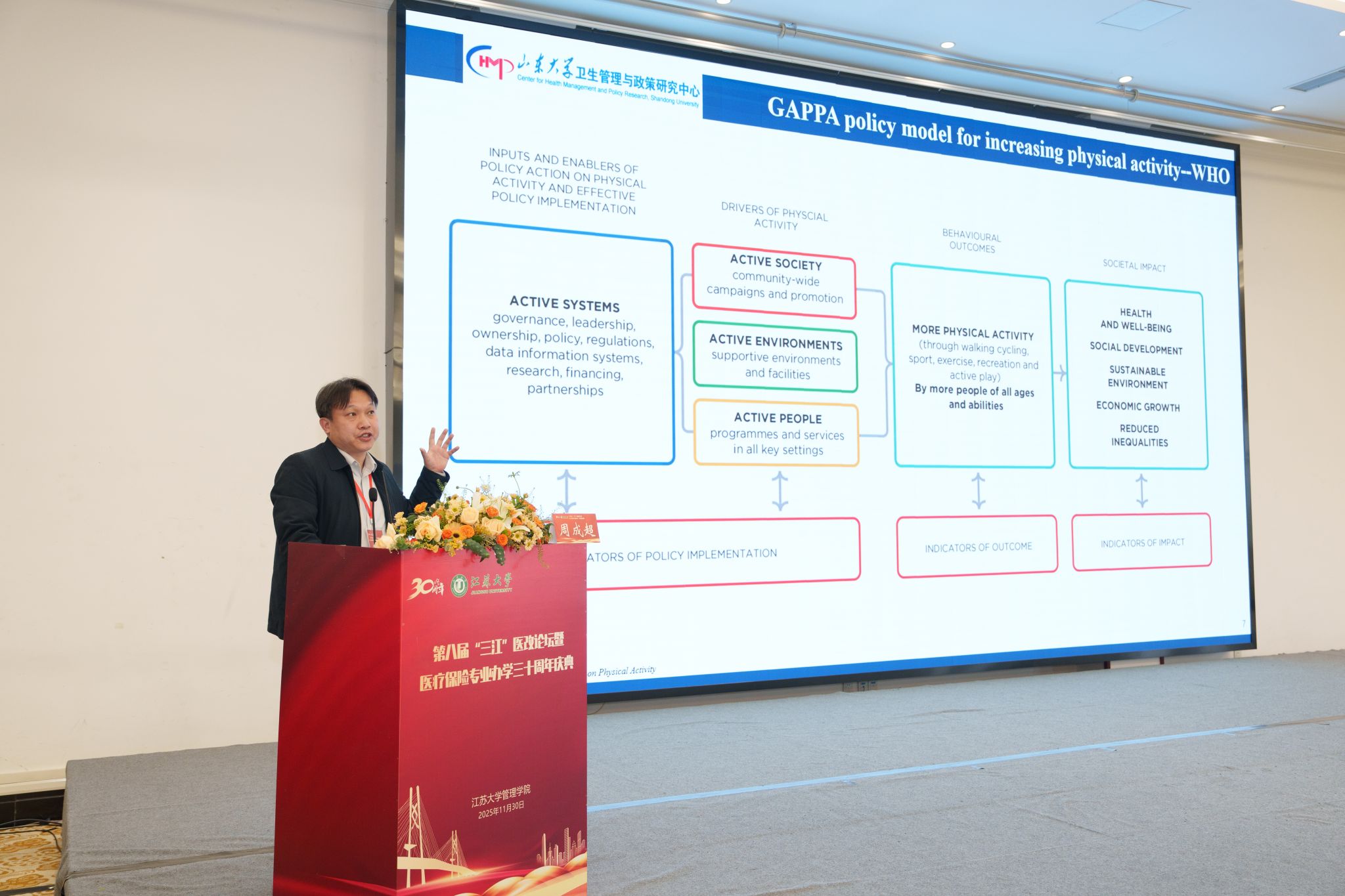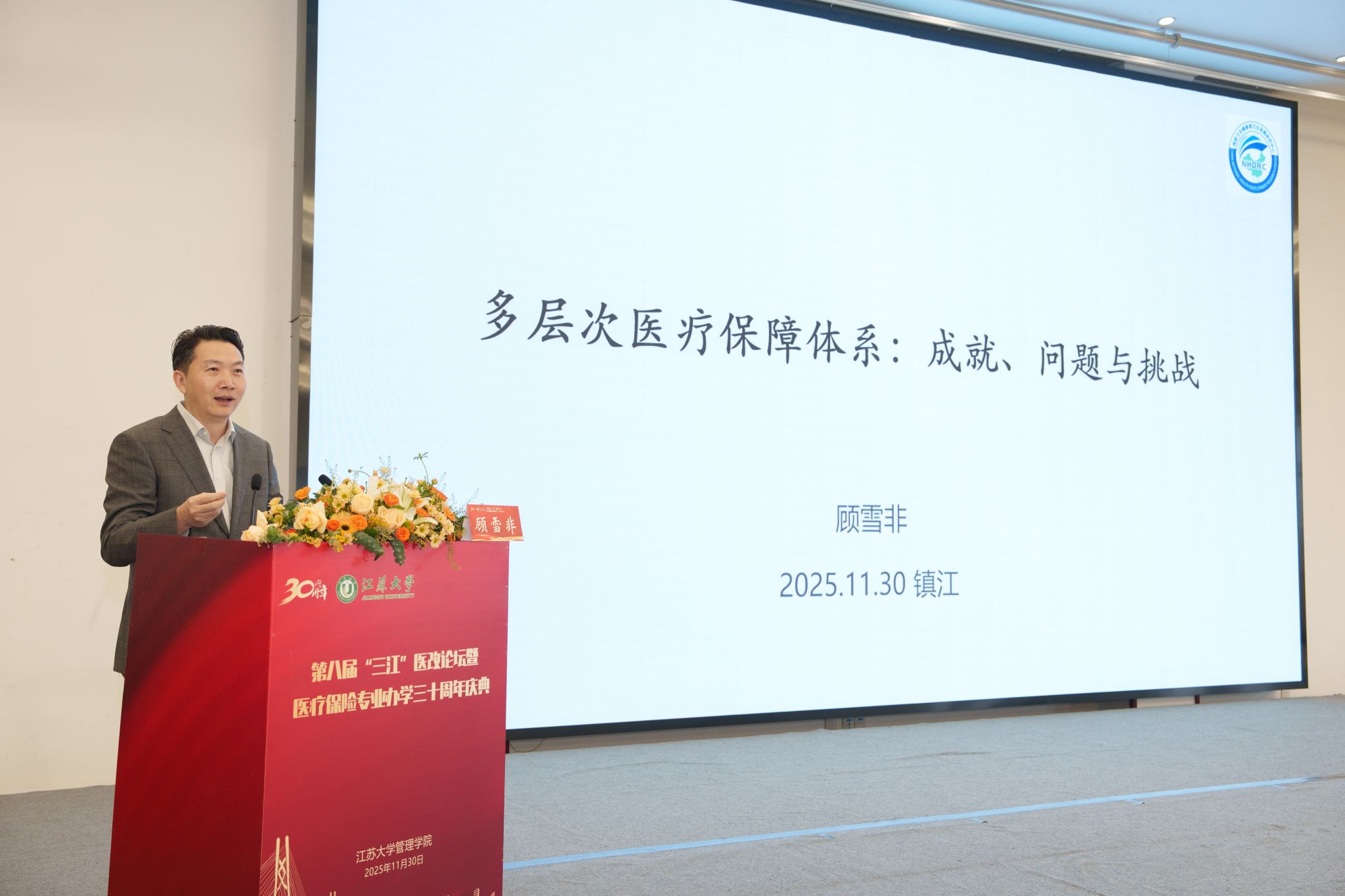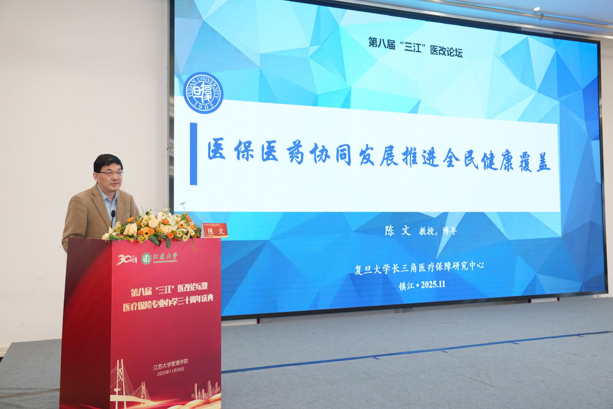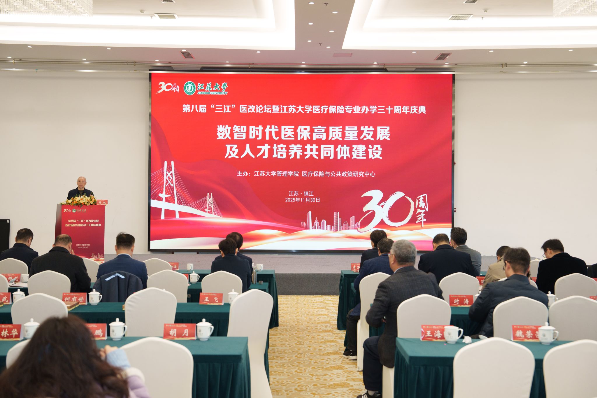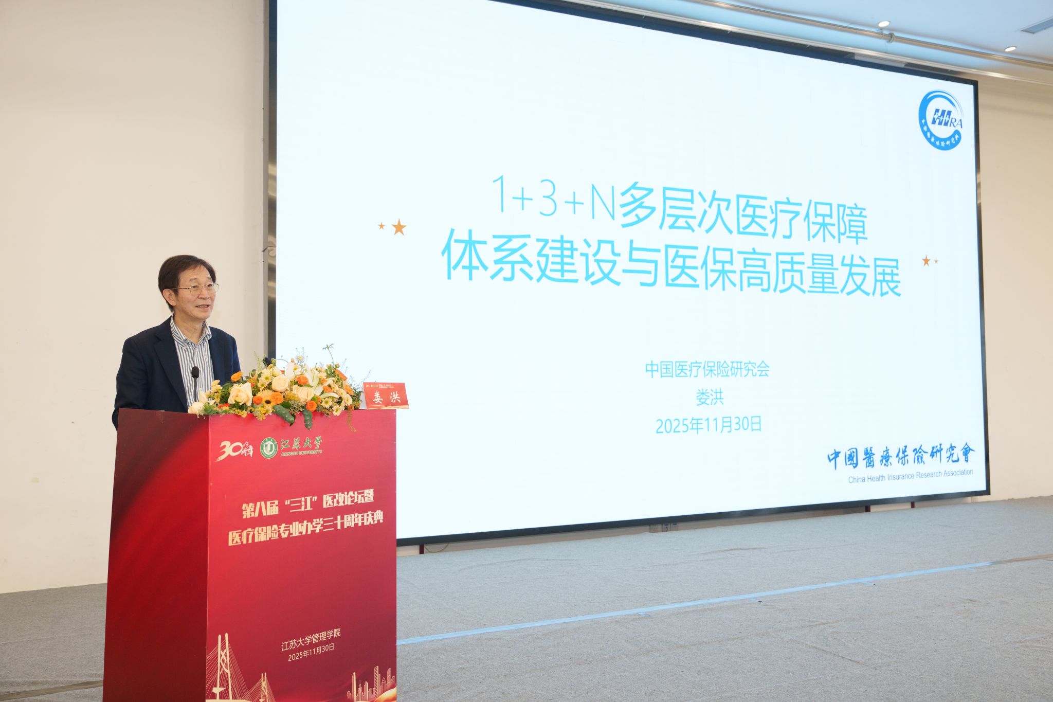 11月30日,第八届“三江”医改论坛暨beat365中文官方网站医疗保险专业办学30周年庆典在校举行。校党委书记李洪波,中国医疗保险研究会副会长、国务院参事室特约研究员、国家医疗保障研究院院长娄洪,国家医保局医药管理司原副司长李淑春,国家卫健委卫生发展研究中心医药卫生技术评估与创新发展部部长顾雪非,以及来自全国40余所开设医疗保险相关专业高校的代表、校内外嘉宾、beat365官网医保专业校友和在校师生300余人参加活动。庆典仪式由管理学院院长朱永跃主持。