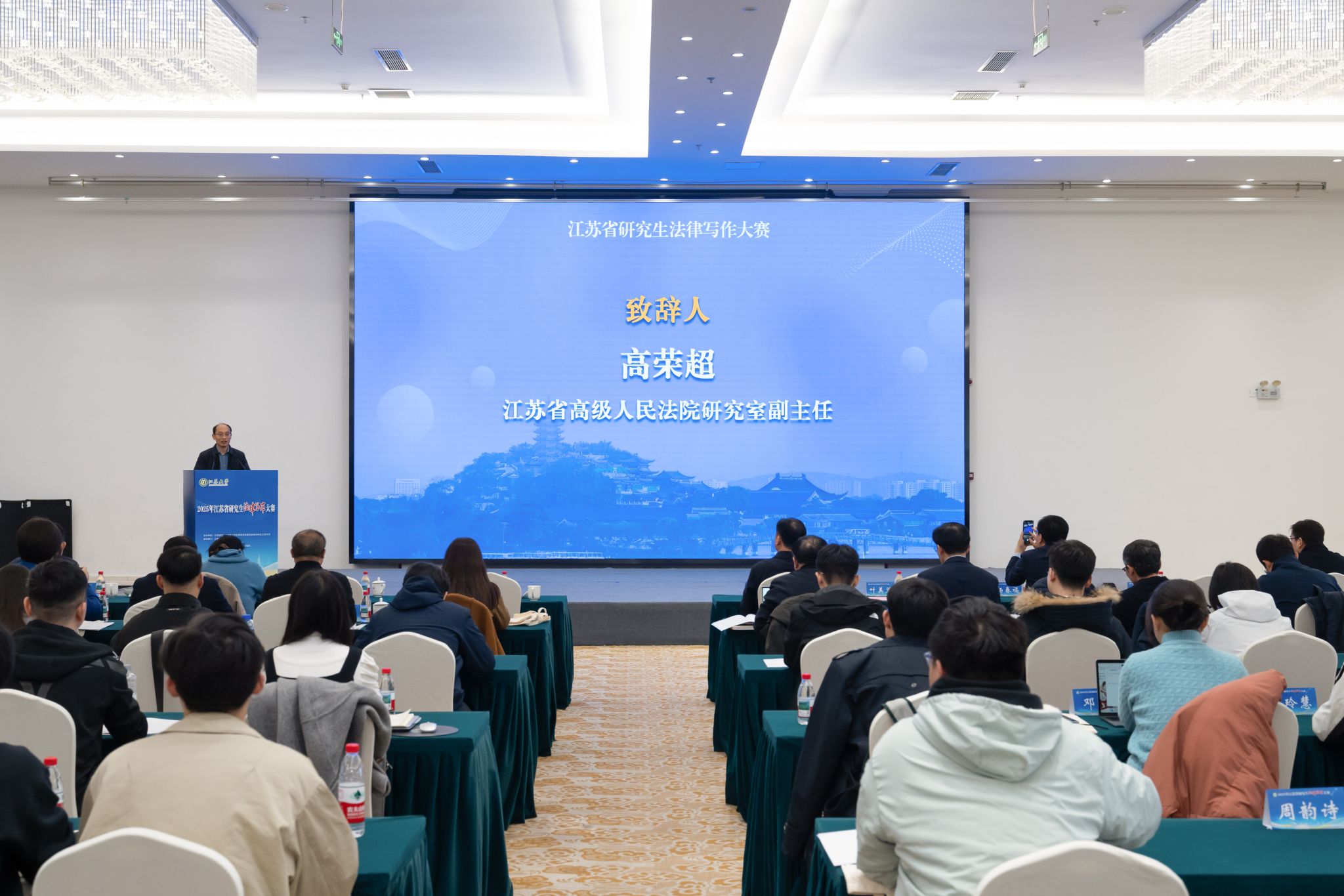 夏锦文在致辞中表示,大赛的举行是推动法学教育从“知识本位”向“能力与素养本位”深化、促进法学理论研究与法治实践深度融合的有力举措,希望参会师生立足江苏实践回应国家战略,面向职业需求提升综合素养,聚焦前沿问题贡献智慧力量,为形成中国特色、江苏辨识度的法学话语体系贡献青年才智。