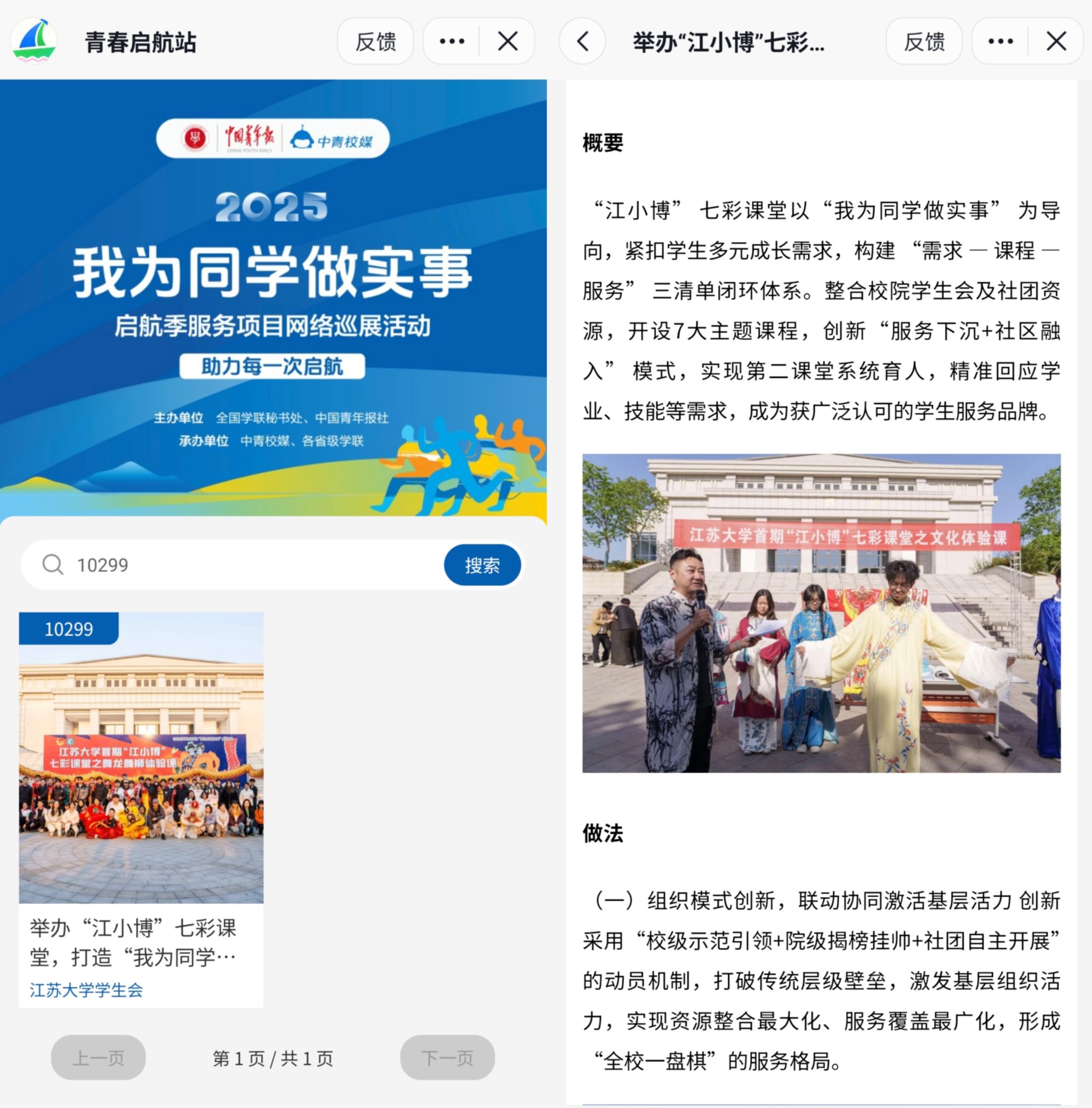 近日,由全国学联联合中国青年报、中青校媒发起的“我为同学做实事”启航季服务项目网络巡展结果公布,beat365官网学生会申报的“举办‘江小博’七彩课堂,打造‘我为同学做实事’新常态”项目入选全国巡展名单。