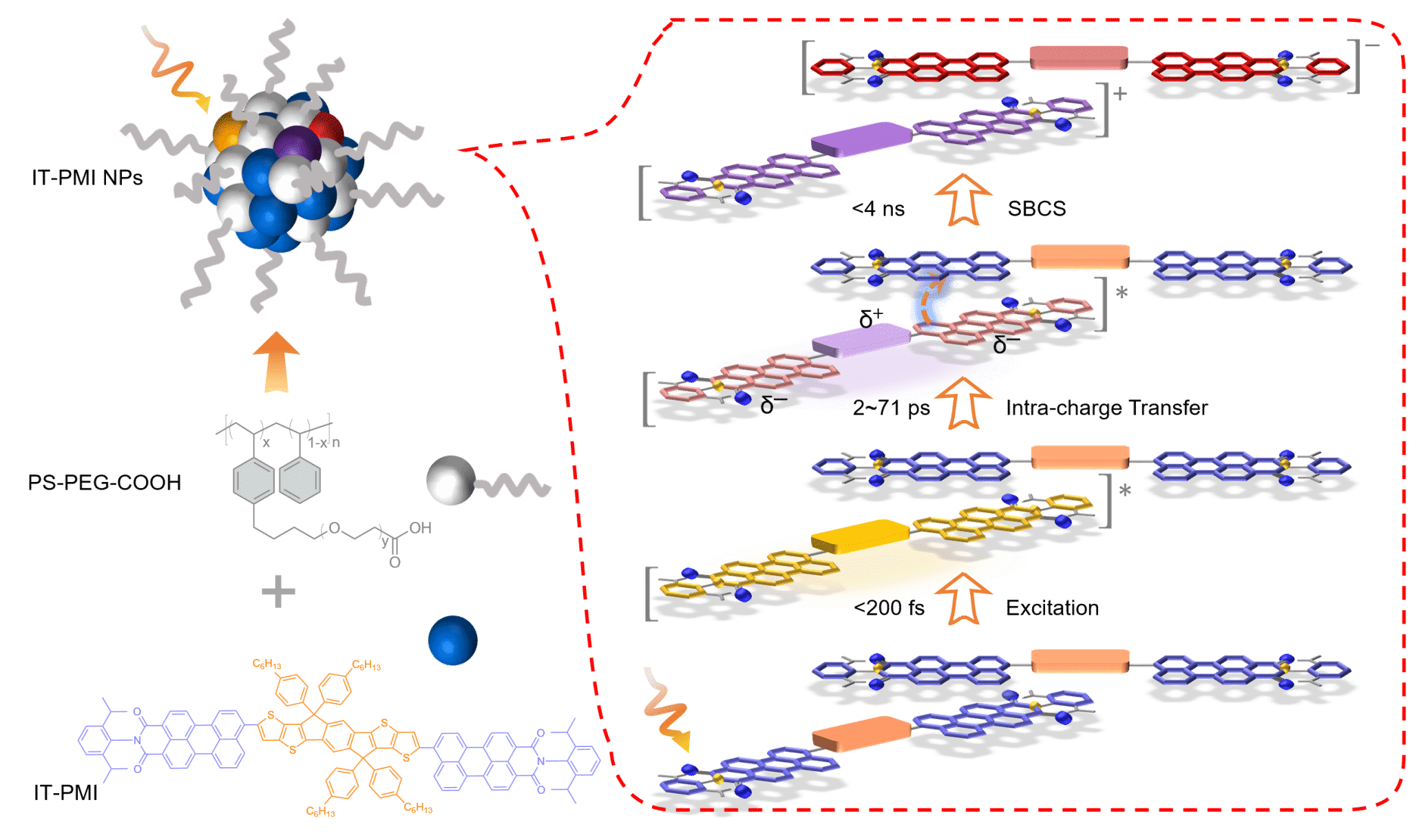 光催化产氢被视为将太阳能转化为化学能的重要途径,是实现可再生能源转换与存储的关键技术之一。然而,传统有机光催化剂面临电荷快速复合引致电荷分离态寿命短的瓶颈,严重限制了其应用。该论文设计了一种具有C₂轴对称结构的“受体—供体—受体”有机分子IT-PMI,通过构筑有机纳米晶π-π堆积结构,成功设计出一种具有超长寿命电荷分离态的有机纳米晶光催化剂,为高效光催化产氢开辟了新路径。