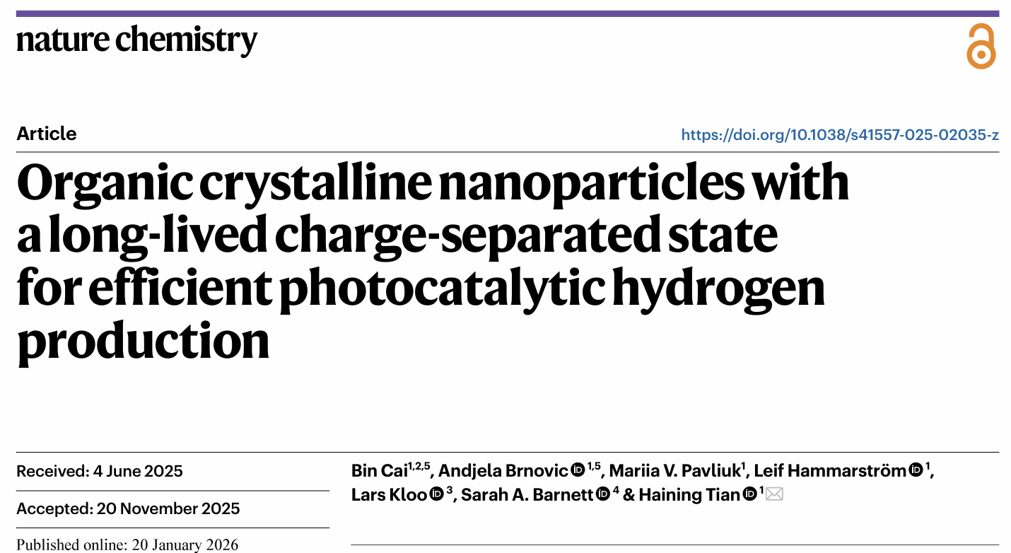 近日,beat365官网能源研究院江苏省特聘教授蔡斌与瑞典乌普萨拉大学田海宁教授合作,以第一作者在国际顶级期刊《自然 化学》(Nature Chemistry)发表研究性论文。