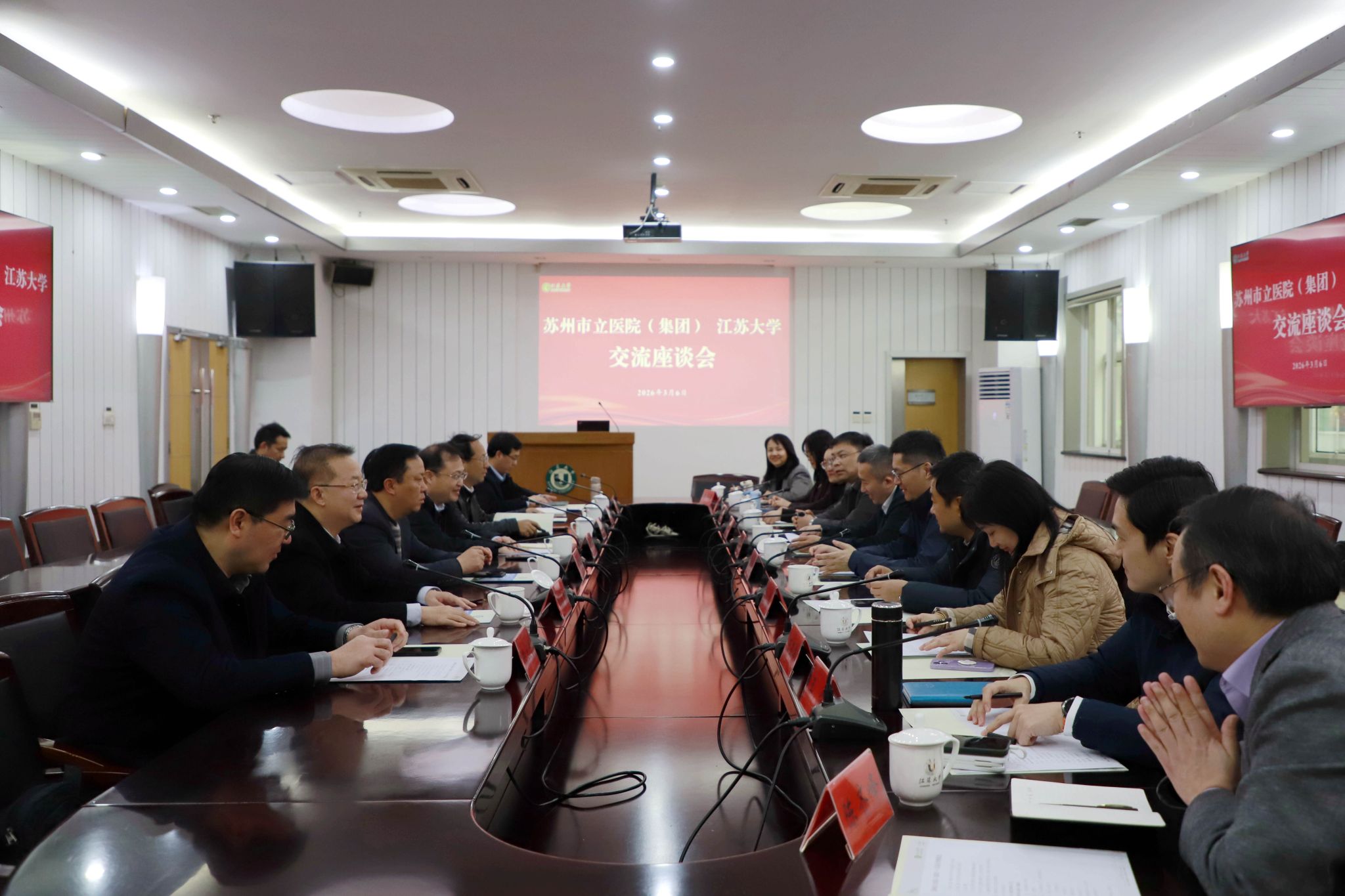 3月6日,苏州市立医院(集团)党委副书记、院长陈彦一行来校调研交流,党委常委、副校长郁明华接待来访一行。