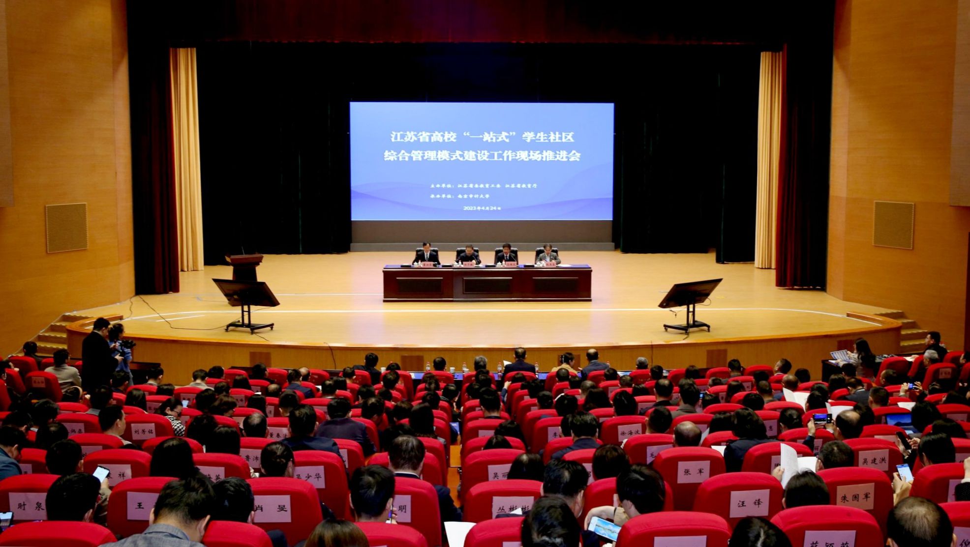4月24日,江苏省高校“一站式”学生社区综合管理模式建设工作推进会在南京审计大学召开,省委教育工委副书记、省教育厅党组成员徐子敏出席会议并讲话。beat365官网党委副书记李洪波代表学校参会并作会议交流发言。