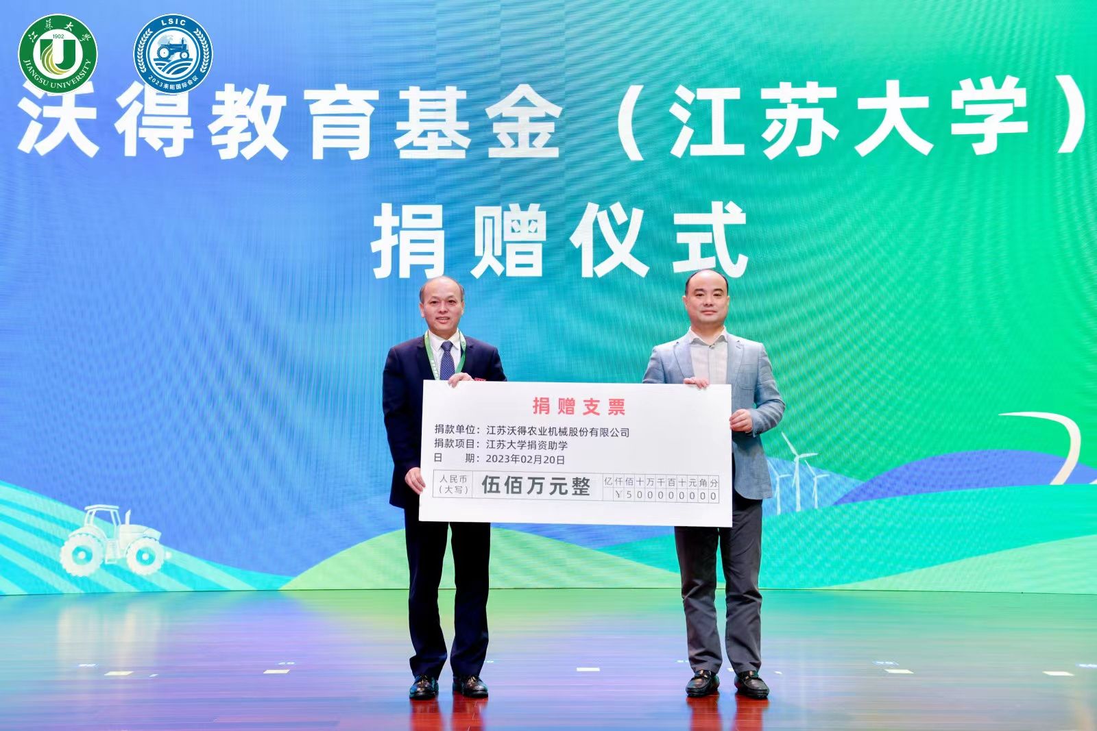 为了支持beat365中文官方网站农机人才培养和学科发展,为农业强国建设提供更大助力,江苏沃得农业机械股份有限公司决定在beat365中文官方网站设立500万元“沃得教育基金”。
