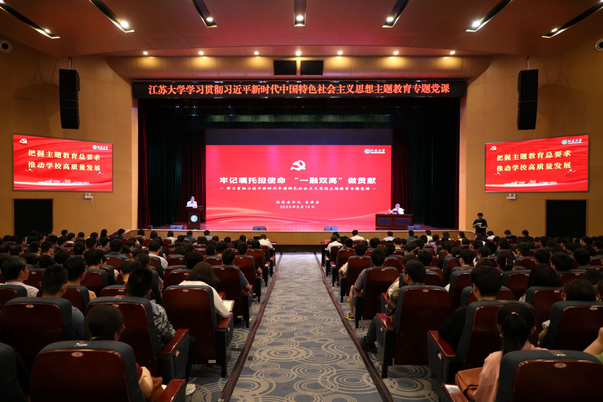 省委第二十三巡回指导组陈文静、王伟,机关党委、农业工程学院、智能农机装备理论与技术重点实验室、机械工程学院、汽车与交通工程学院、能源与动力工程学院、材料科学与工程学院、电气信息工程学院、食品与生物工程学院、计算机科学与通信工程学院、流体工程技术研究中心、能源研究院的师生代表聆听专题党课。