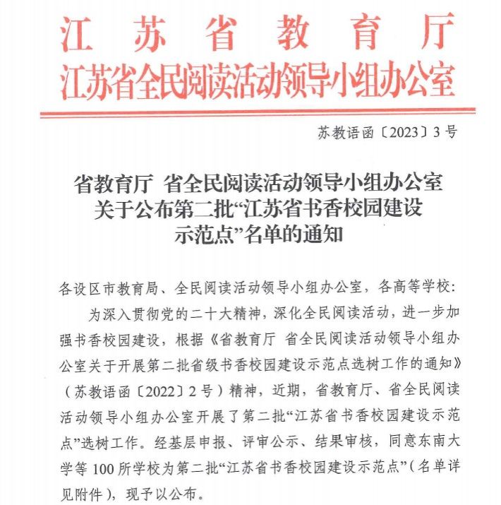 日前,江苏省教育厅公布了第二批“江苏省书香校园建设示范点”名单,beat365中文官方网站成功入选。