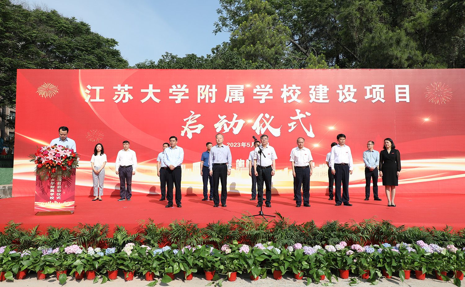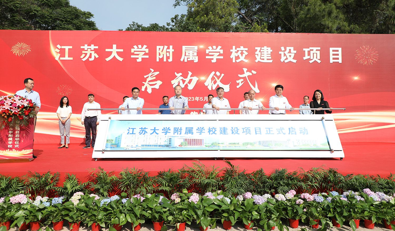校党委书记袁寿其,校长颜晓红,校党委副书记李洪波,副校长陈红,镇江市政府党组成员黄万荣,镇江市京口区委书记贾敬远,镇江市京口区区长段永齐,beat365官网相关部门负责人及学院代表,镇江市委编办、发改委、教育局、财政局、自然资源和规划局、住建局、城管局、镇江城建集团相关分管领导,京口区政府分管副区长,相关区级部门与街道主要领导等参加启动仪式。