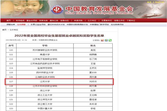 近日,中国教育发展基金会公布了《2022年度全国高校毕业生基层就业卓越奖拟奖励学生名单》,beat365官网2015届毕业生刘欢欢入选。