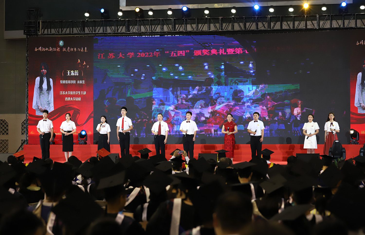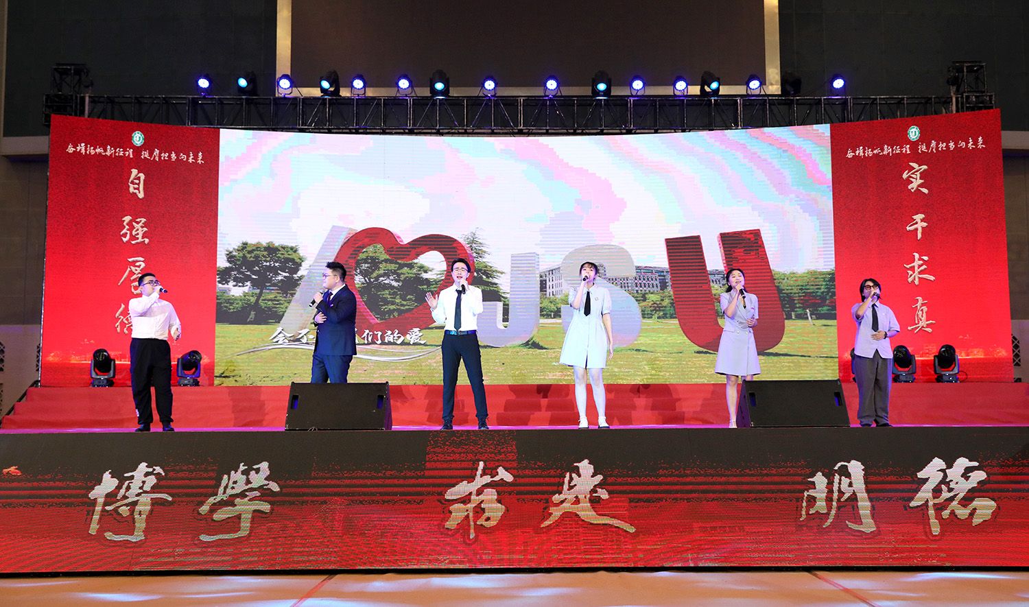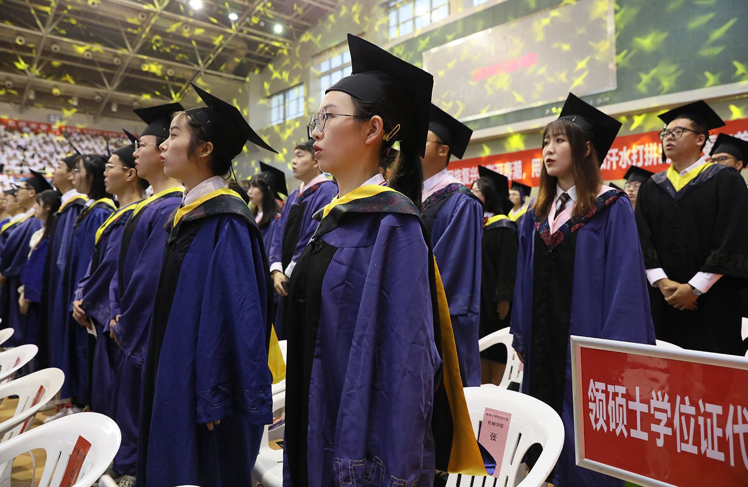 典礼上,师生代表表演了情景朗诵《最美的遇见》和合唱《星辰大海》,祝福全体毕业生带着美好的回忆,奔赴祖国各地继续追梦。典礼最后,全场起立,齐唱校歌《百年辉煌向未来》,表达对学校的真挚祝福和对学子的美好祝愿。