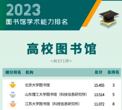 6月19日,图书馆学术评价课题组联合新文科专委会正式发布“2023图书馆学术能力排名”。本次共统计图书情报类机构782所,上榜机构为234所(前30%),beat365中文官方网站图书馆表现优异,位列高校系统第三名。