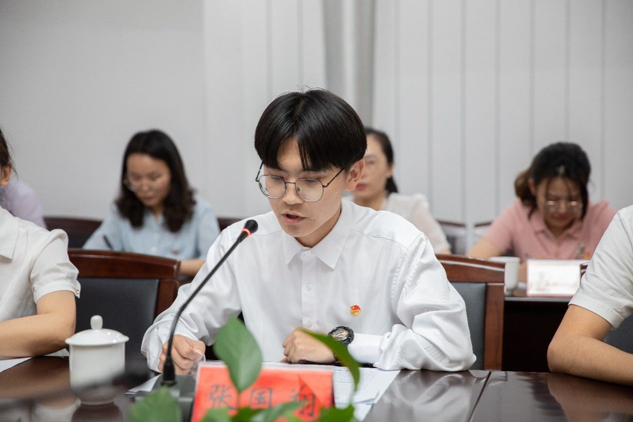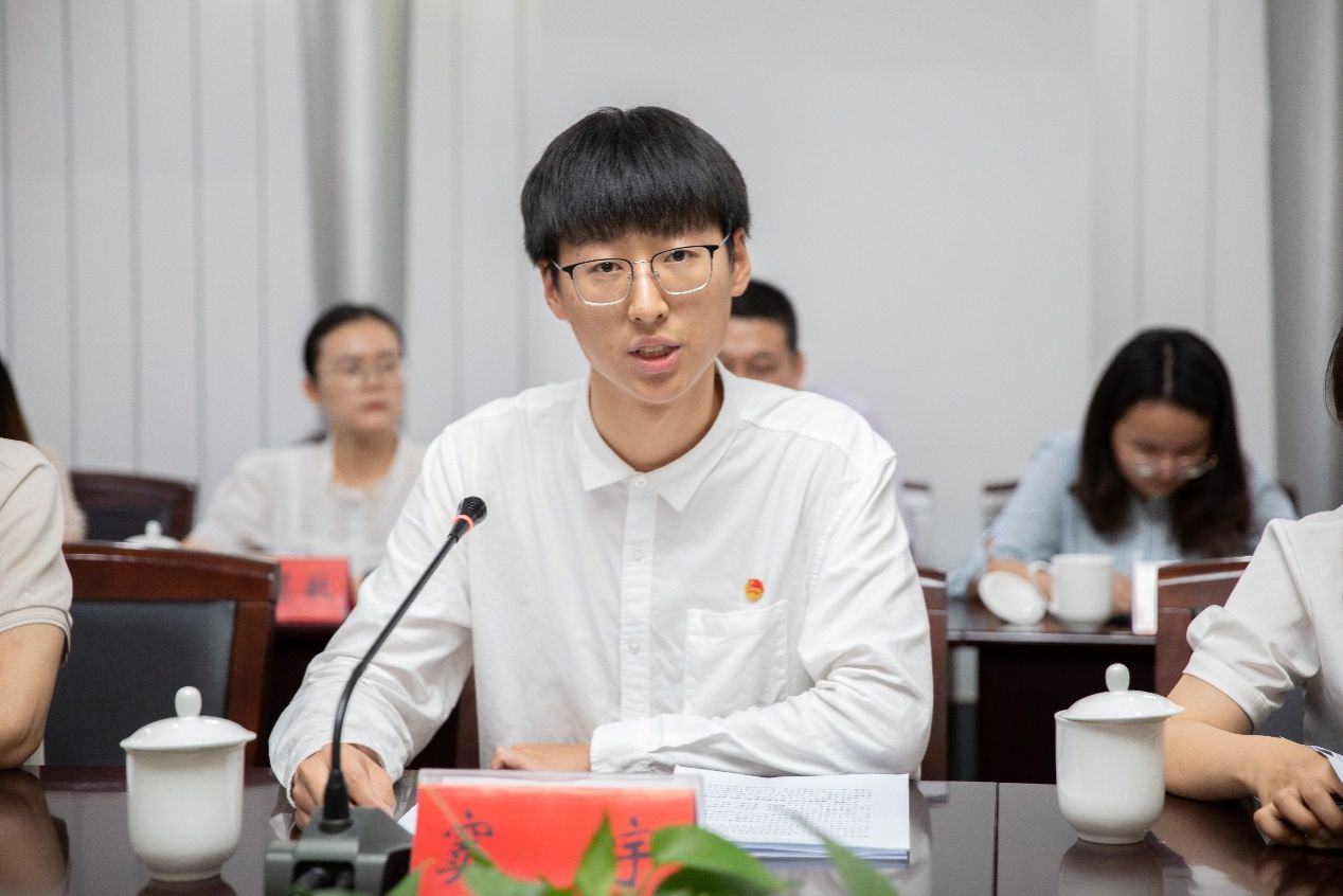 管理学院团委书记周存君、学生会工作人员张国翔、第五期大学生骨干培训班学员代表窦宇等三位师生分别代表基层团干部、学生会组织和团员青年,结合自身学习工作实际,分享了学习体会。