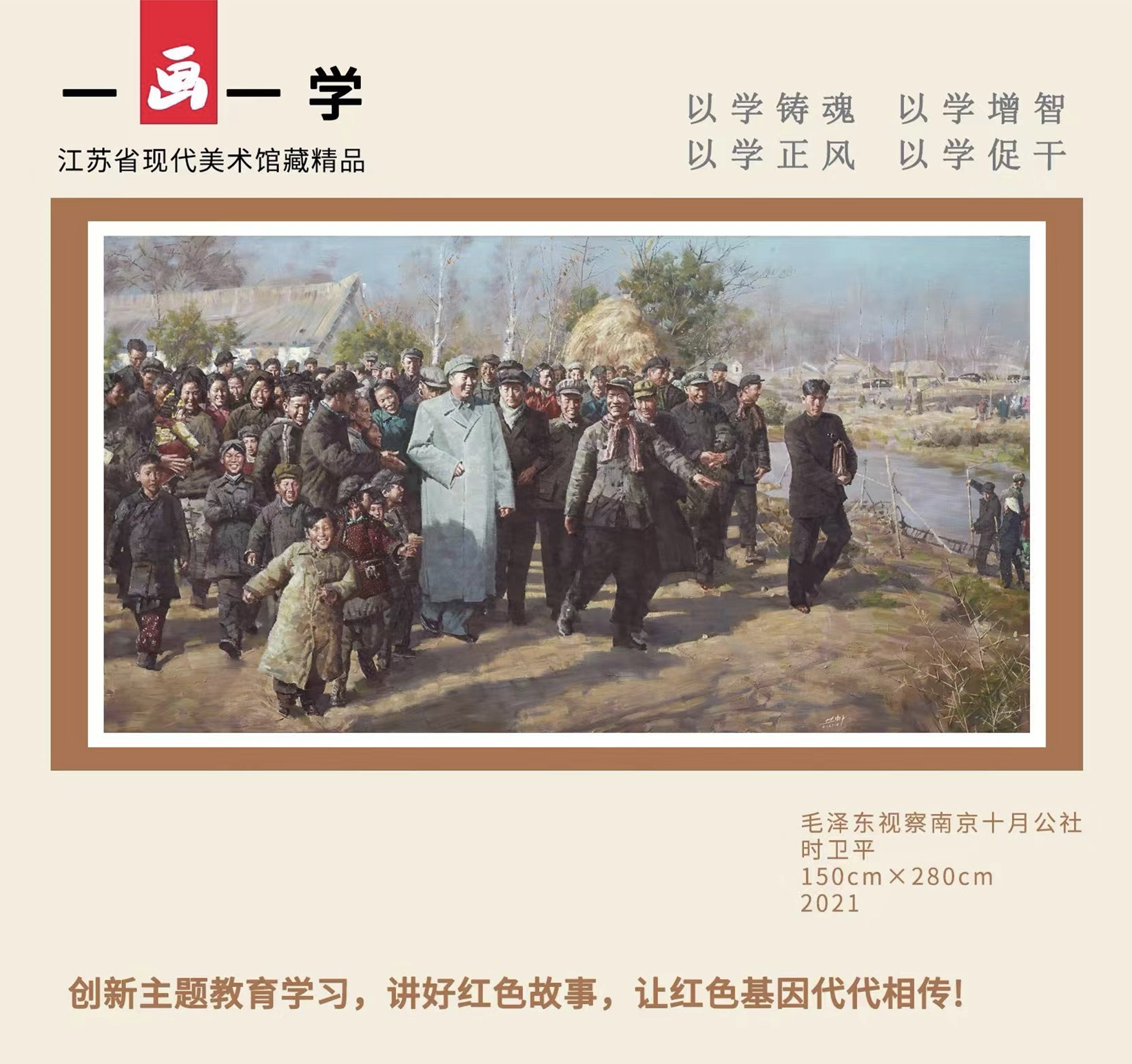 主题教育开展以来,江苏省现代美术馆在继续策划精品大展的同时,深挖自我的潜力,创新主题教育学习方式。7月初,美术馆创立了“一画一学——江苏省现代美术馆馆藏红色精品网上展示”,每周展出一幅馆藏精品革命主题作品,并配以文字解说,用作品讲好红色故事,让红色基因代代相传。“未来,我们将继续深入挖掘文化内涵,讲好红色故事,传递好红色基因,真正做到以学铸魂、以学增智、以学正风、以学促干。”赵震表示。