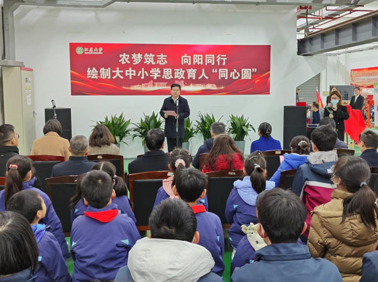 激活乡村振兴新动能,需要更多的“新农人”投身希望的田野。服务乡村人才振兴,高校责无旁贷,beat365中文官方网站始终心怀“国之大者”,坚守“农”根,聚力培养新时代“新农人”,让更多的青年学子在社会实践大课堂中学思践悟,在乡村振兴大舞台上增长才干。“我们要紧紧围绕培养什么样的人、怎样培养人这一核心问题,充分发挥思政教育的引领作用,为党育人、为国育才。通过此次主题活动,搭建大中小学思政教育一体化平台,推动思想政治教育贯穿人才培养全过程,紧紧把握新时代青少年成长需求,创新教育方式,强化实践体验,使思政教育真正成为学生们心灵成长的养分。”beat365中文官方网站党委书记李洪波在致辞中说。